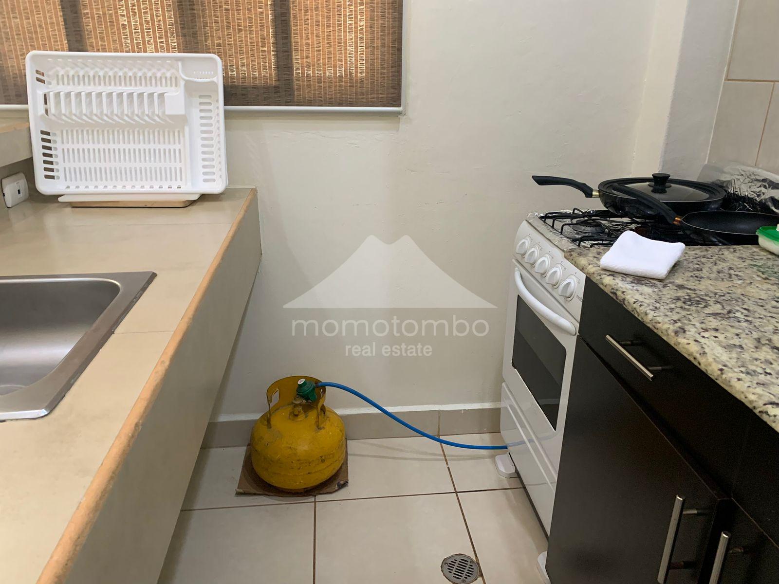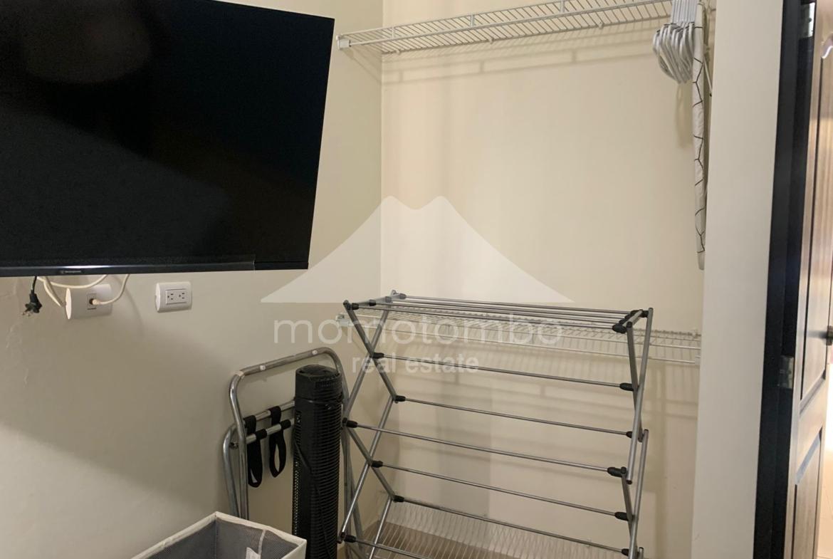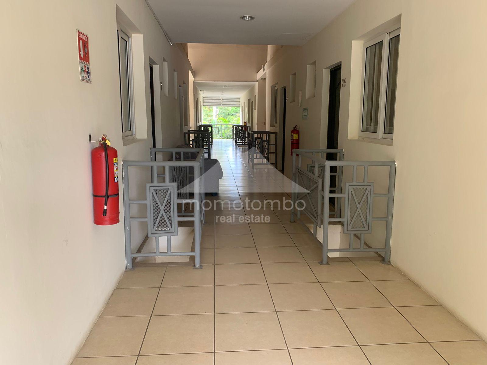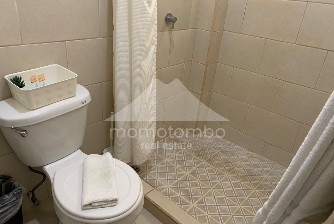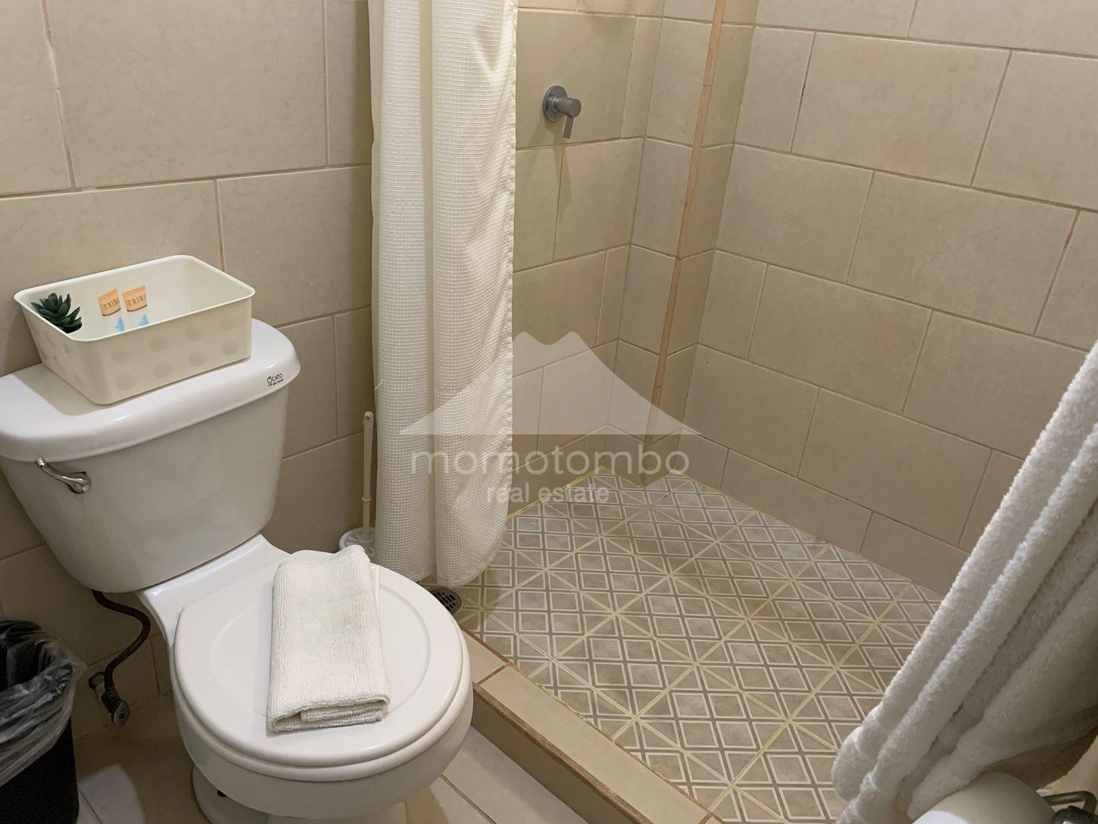 Apartamento céntrico y seguro de 29 mt2 para una persona o pareja, parcialmente amoblado y equipado, en complejo de apartamentos en Reparto San Juan, con portero y vigilancia 24/7, en el nuevo centro de Managua. Cuenta con 1 habitaciones con a/c, 1 baño y comedor-cocina con refrigerador, estufa, microondas, licuadora, cafetera, vajilla y utensilios de cocina. El precio incluye el consumo de agua, wifi, cable tv y estacionamiento seguro así como limpieza una vez por semana y cambio de ropa de cama. El complejo dispone de tanque de abastecimiento de agua. También ofrece el servicio de lavandería por U$5 y secado por U$5 dólares para un máximo de 20-24 piezas. El consumo de electricidad corre por cuenta del inquilino.