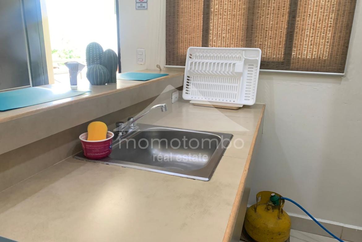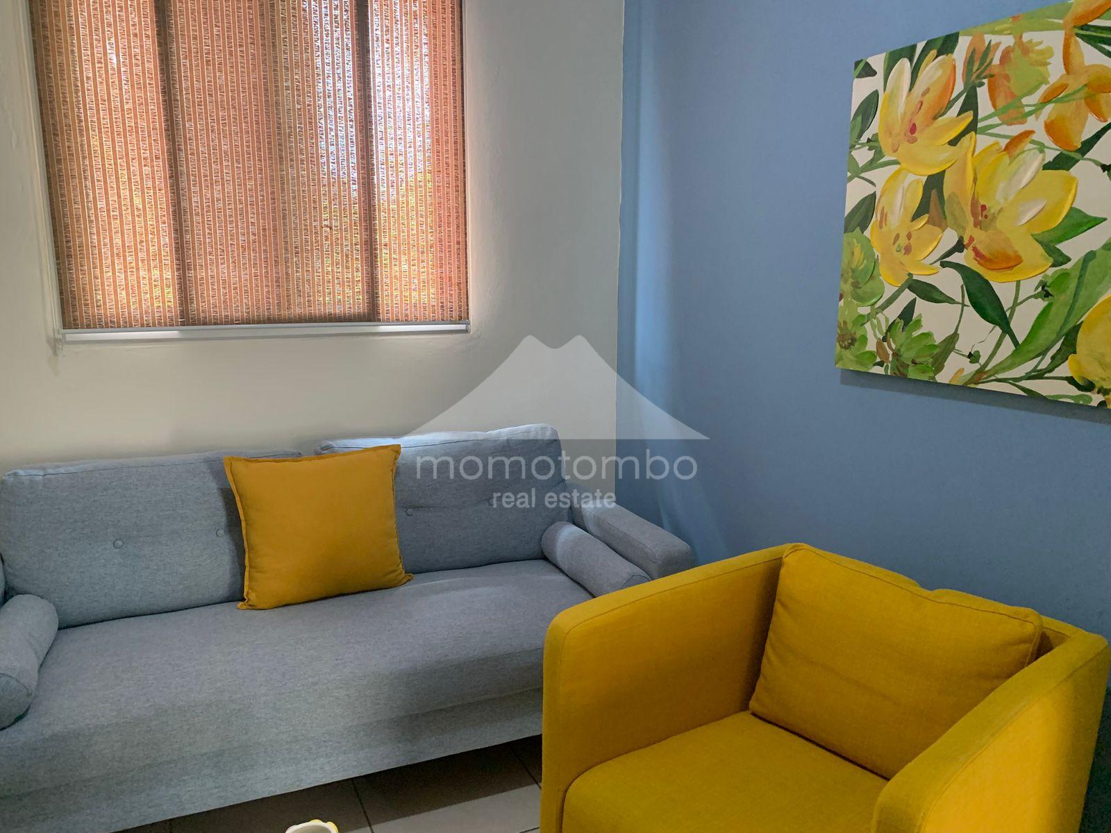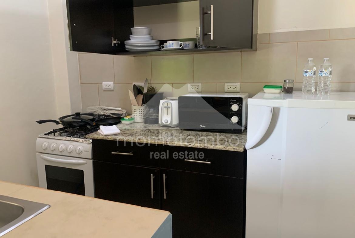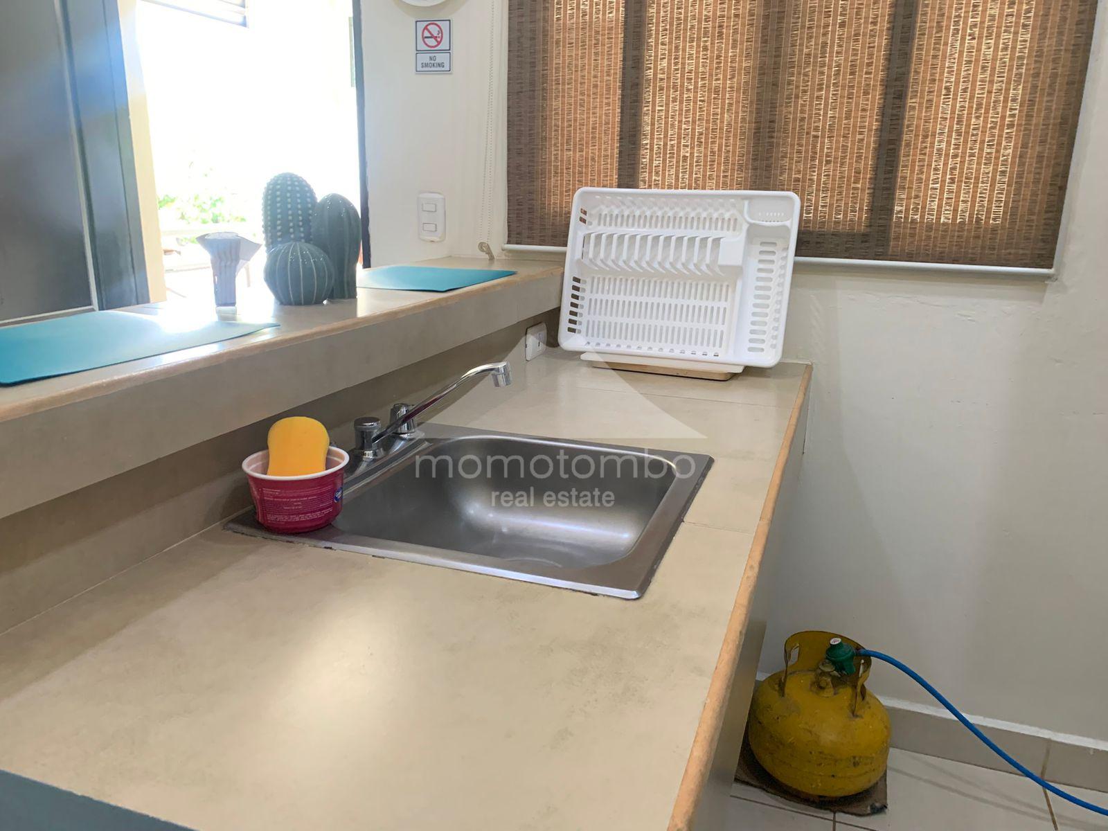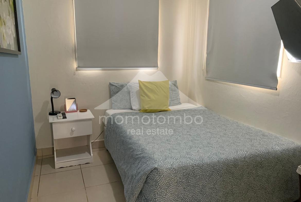 Apartamento céntrico y seguro de 29 mt2 para una persona o pareja, parcialmente amoblado y equipado, en complejo de apartamentos en Reparto San Juan, con portero y vigilancia 24/7, en el nuevo centro de Managua. Cuenta con 1 habitaciones con a/c, 1 baño y comedor-cocina con refrigerador, estufa, microondas, licuadora, cafetera, vajilla y utensilios de cocina. El precio incluye el consumo de agua, wifi, cable tv y estacionamiento seguro así como limpieza una vez por semana y cambio de ropa de cama. El complejo dispone de tanque de abastecimiento de agua. También ofrece el servicio de lavandería por U$5 y secado por U$5 dólares para un máximo de 20-24 piezas. El consumo de electricidad corre por cuenta del inquilino.