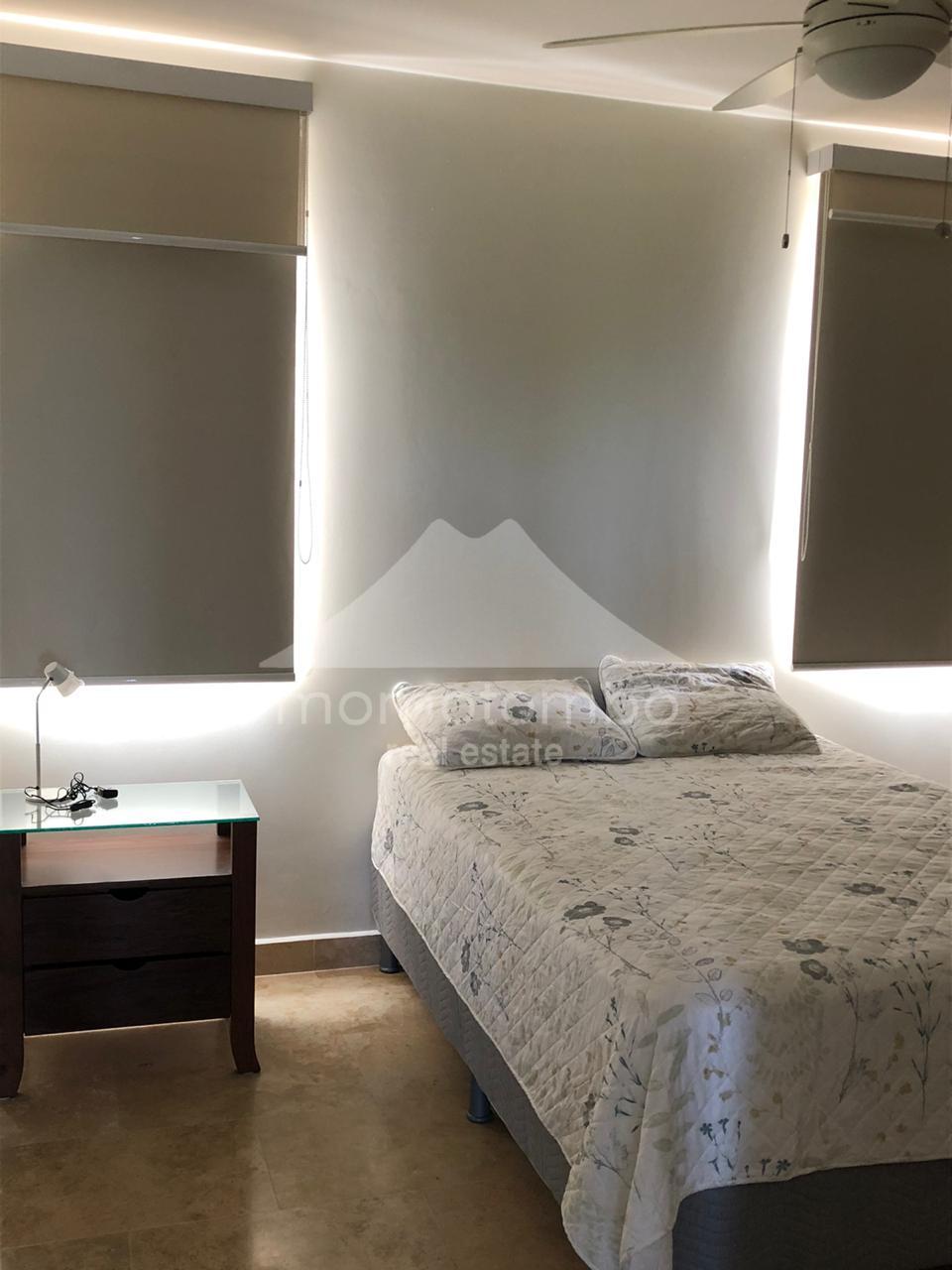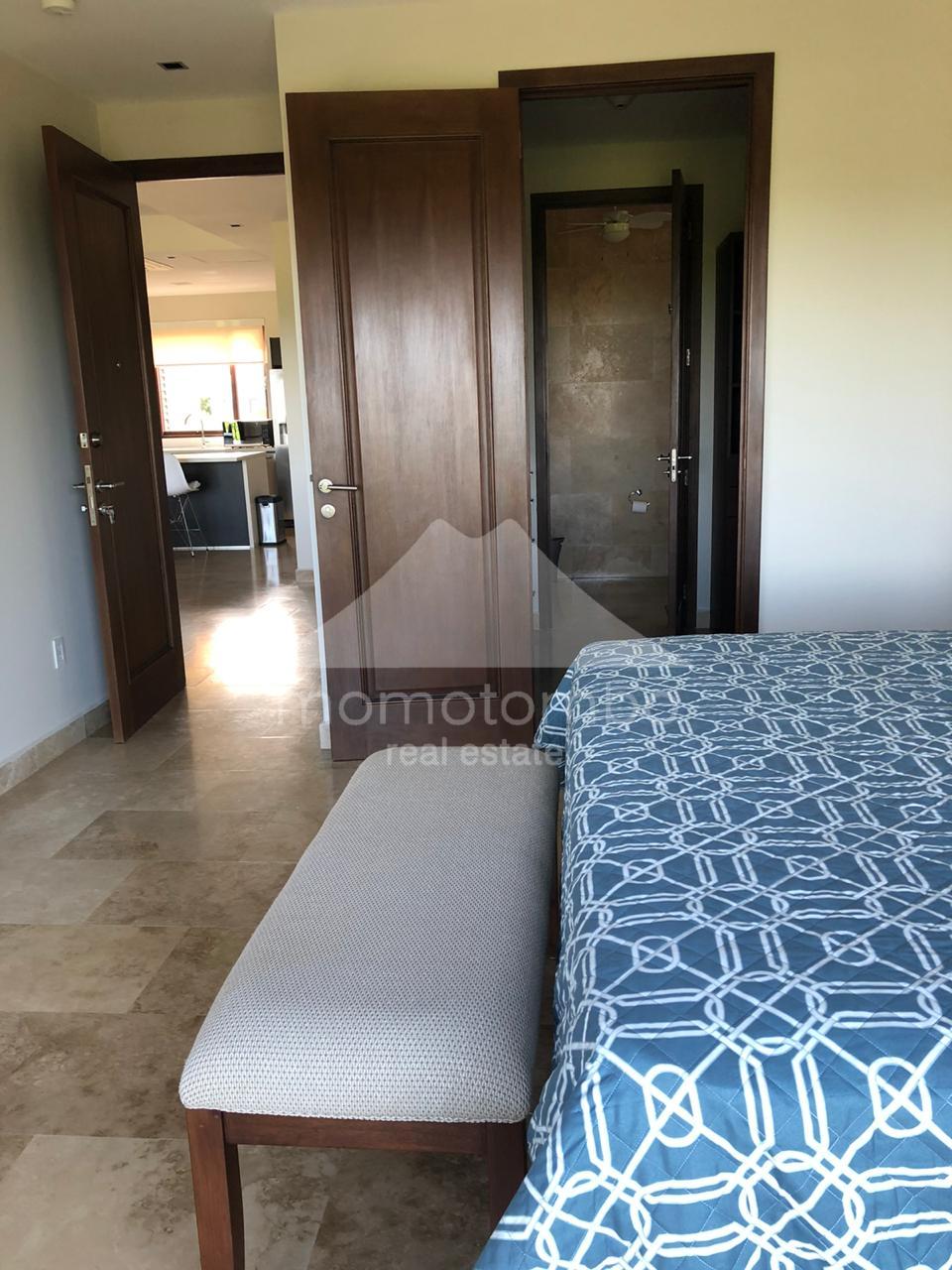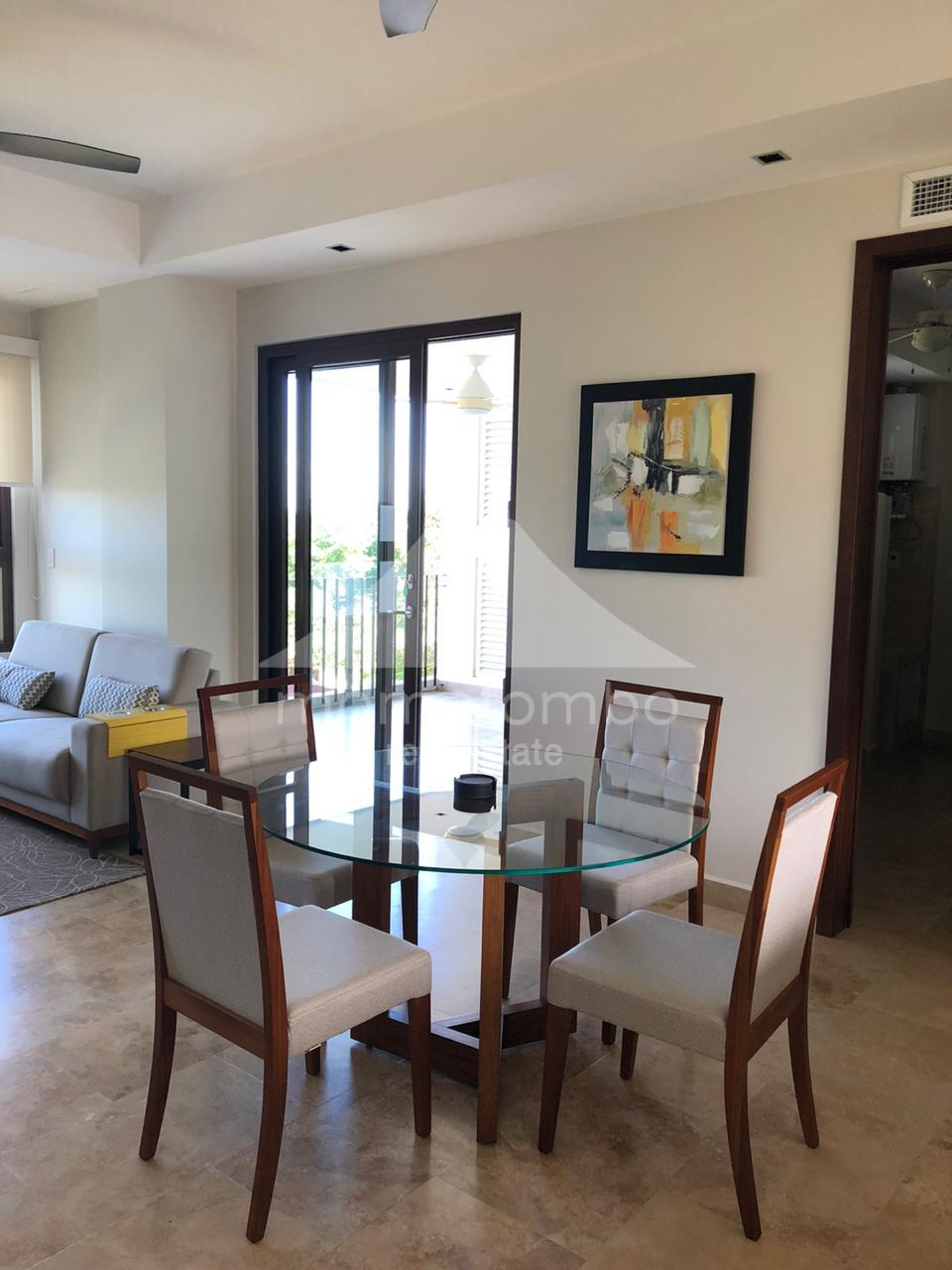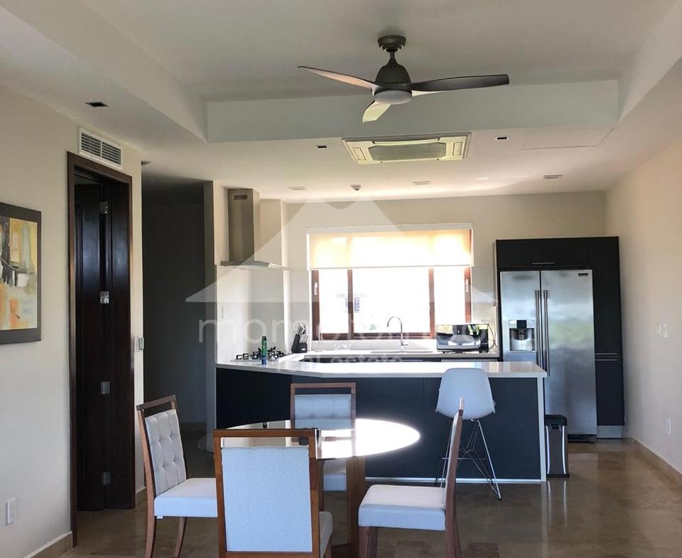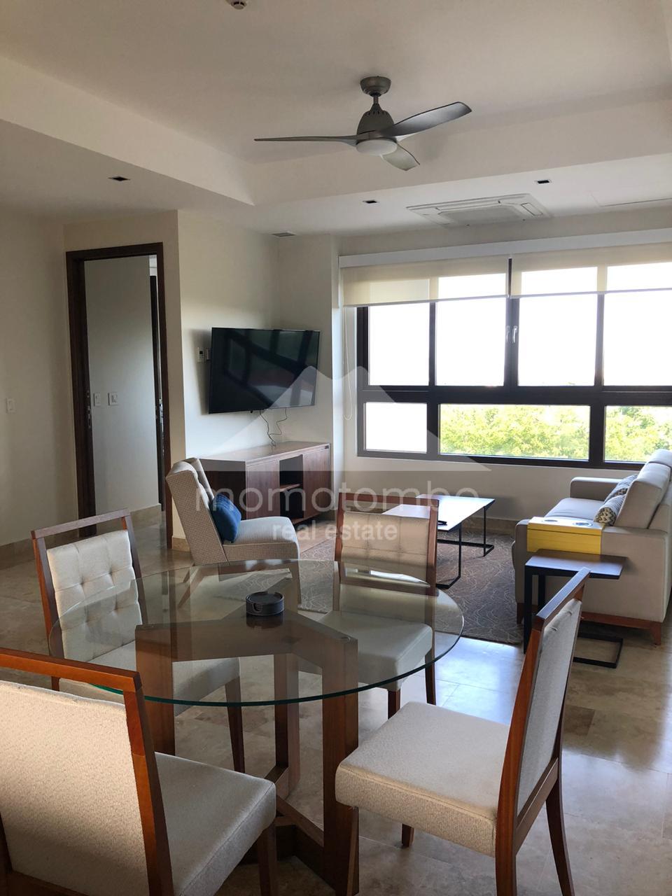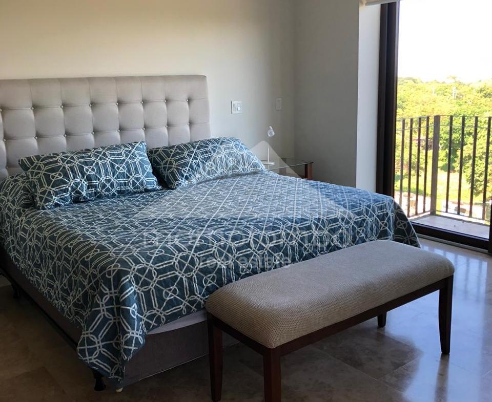se renta lujoso apartamento en condominio viejo santo domingo. consta de 2 habitaciones, 3 baños completos, terraza balcon, sala, comedor, cocina, lavanderia. renta con muebles: refrigeradora, dishwasher, estufa de gas con horno, lavadora y secadora. apta para familia joven o pareja. ubicado en condominio seguro, casa club con gimnasio, piscina y cancha de tenis, aire acondicionado y abanicos de techo.