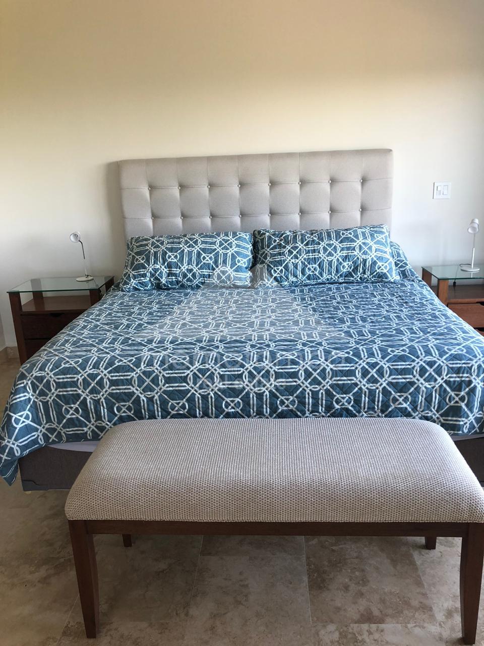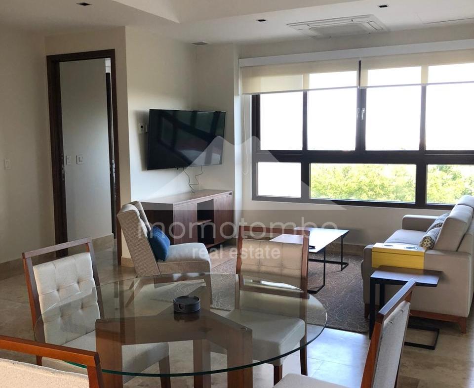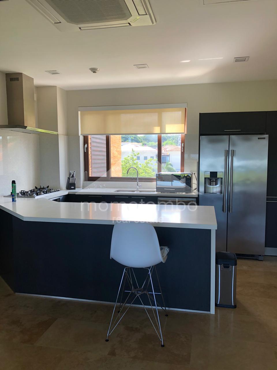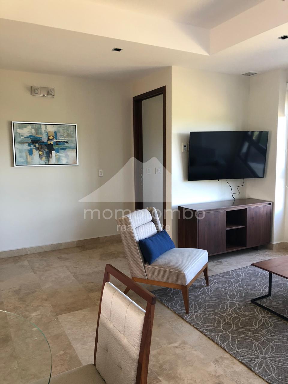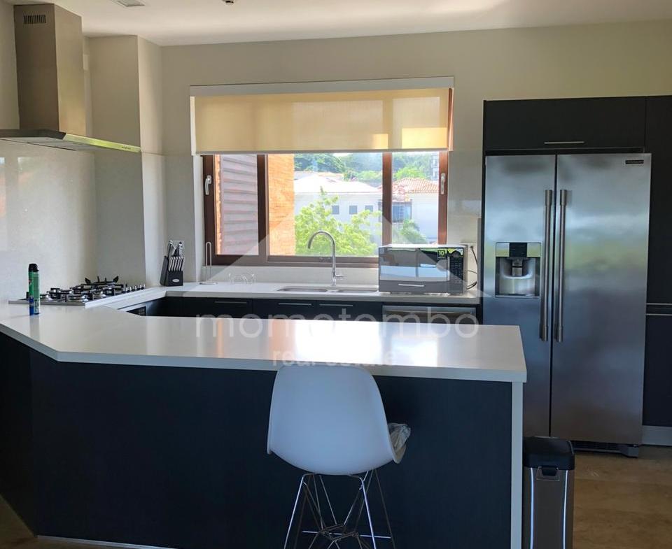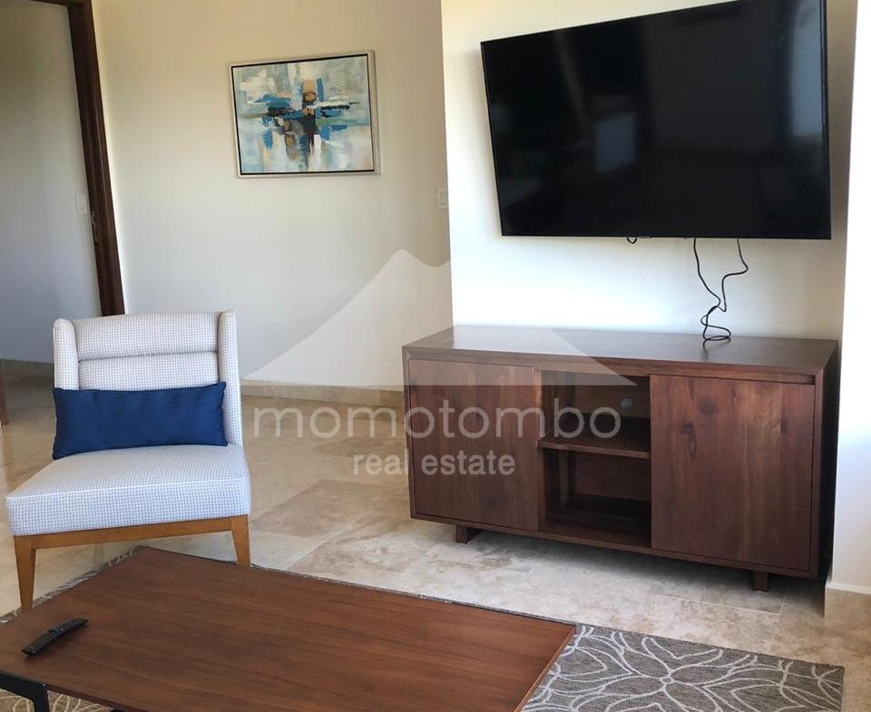 se renta lujoso apartamento en condominio viejo santo domingo. consta de 2 habitaciones, 3 baños completos, terraza balcon, sala, comedor, cocina, lavanderia. renta con muebles: refrigeradora, dishwasher, estufa de gas con horno, lavadora y secadora. apta para familia joven o pareja. ubicado en condominio seguro, casa club con gimnasio, piscina y cancha de tenis, aire acondicionado y abanicos de techo.