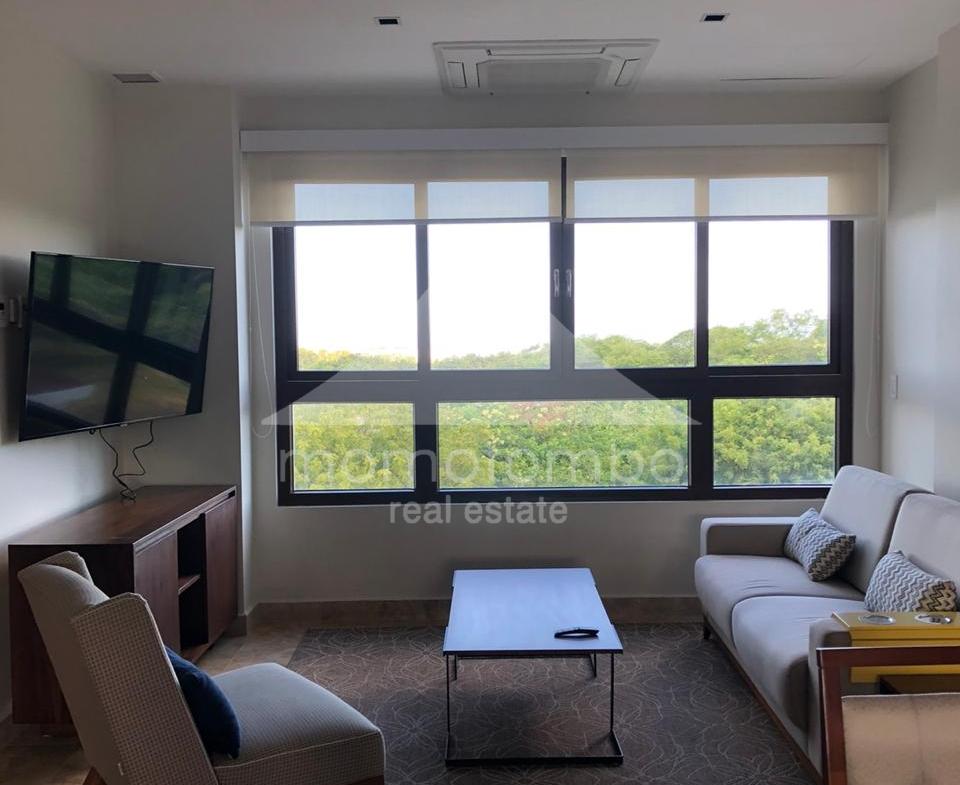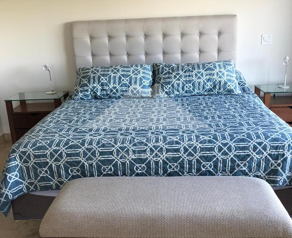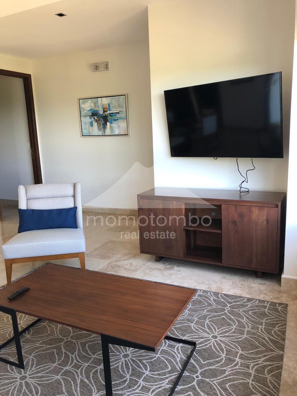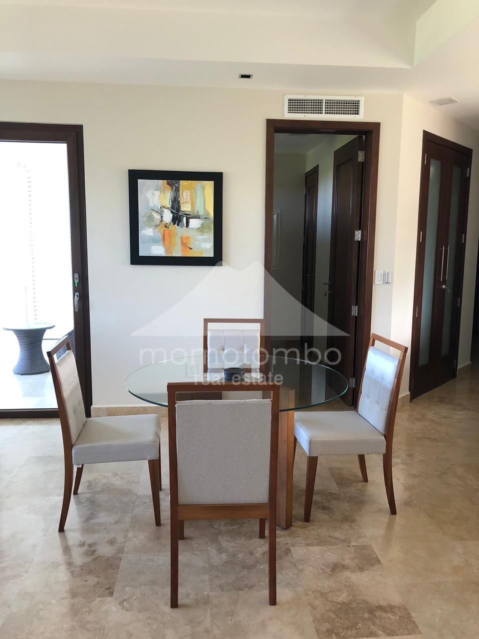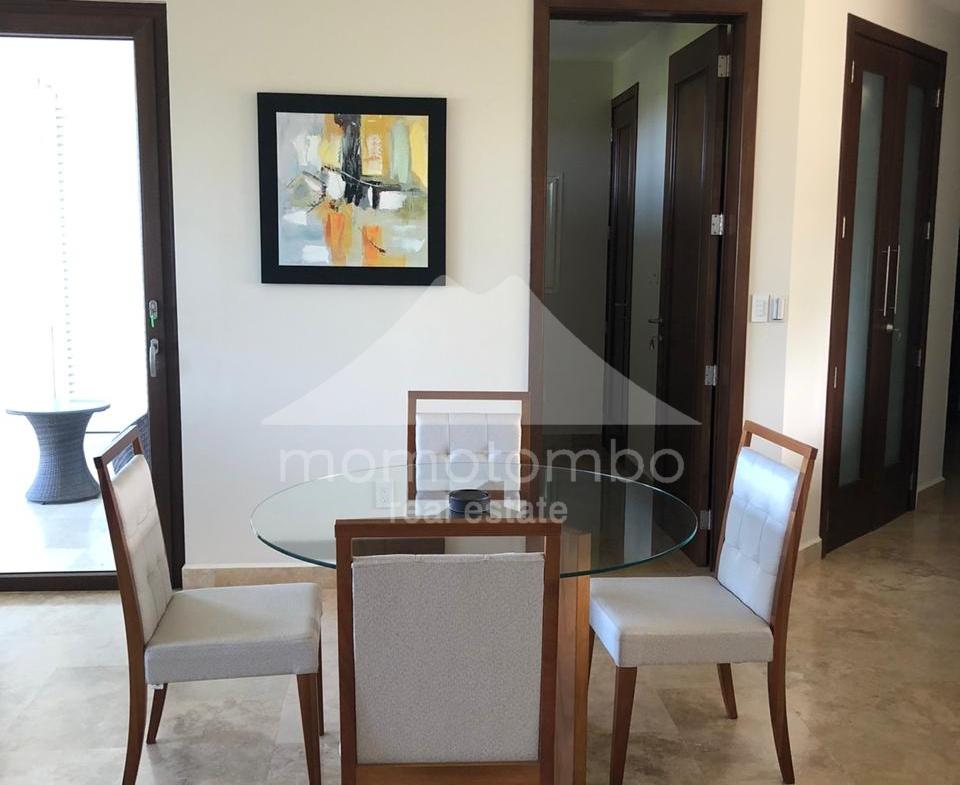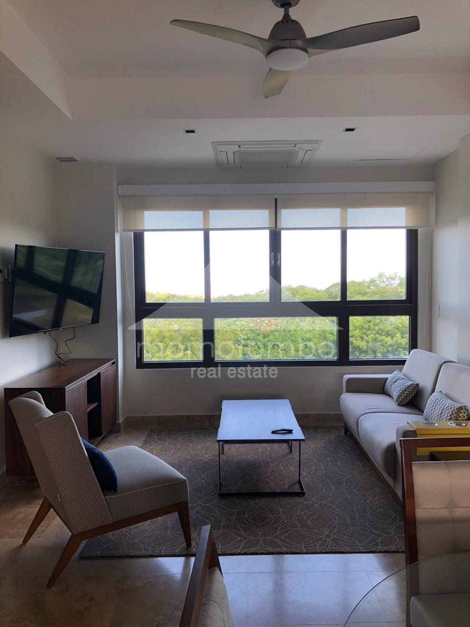 se renta lujoso apartamento en condominio viejo santo domingo. consta de 2 habitaciones, 3 baños completos, terraza balcon, sala, comedor, cocina, lavanderia. renta con muebles: refrigeradora, dishwasher, estufa de gas con horno, lavadora y secadora. apta para familia joven o pareja. ubicado en condominio seguro, casa club con gimnasio, piscina y cancha de tenis, aire acondicionado y abanicos de techo.