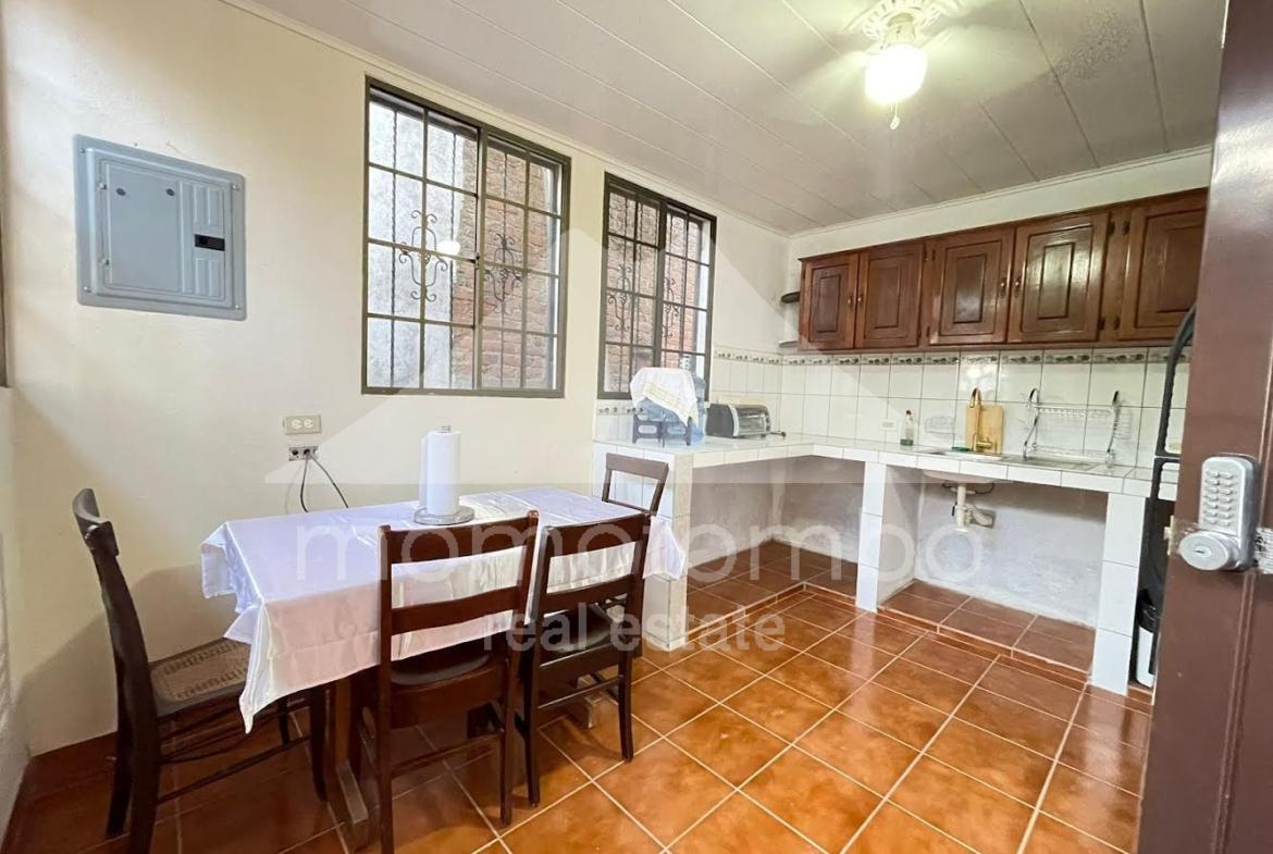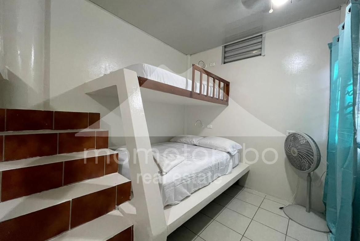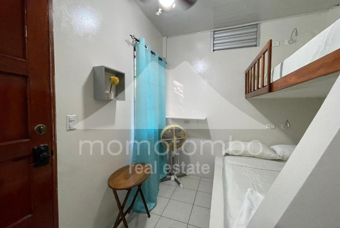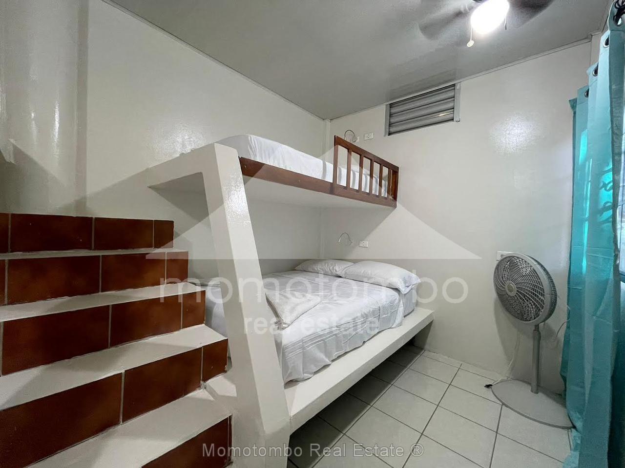 Práctico condominio en renta en San Juan del Sur, a unos pasos de la playa en La Talanguera, con muebles y un total de 5 habitaciones, 5 baños, área social y 2 cocinas. Dispone de 3 habitaciones con cama queen, aire acondicionado y baño propio. Adicionalmente, hay 2 habitaciones con camas sencillas sin aire acondicionado. Si se alquilan todas las habitaciones, el precio es de $300 por noche incluyendo el consumo de electricidad (hasta un máximo a partir del cual se cobra $0.50 por kv), el consumo de agua y la limpieza. También disponible por habitación. Disponibilidad por día, por semana, por mes o por año.