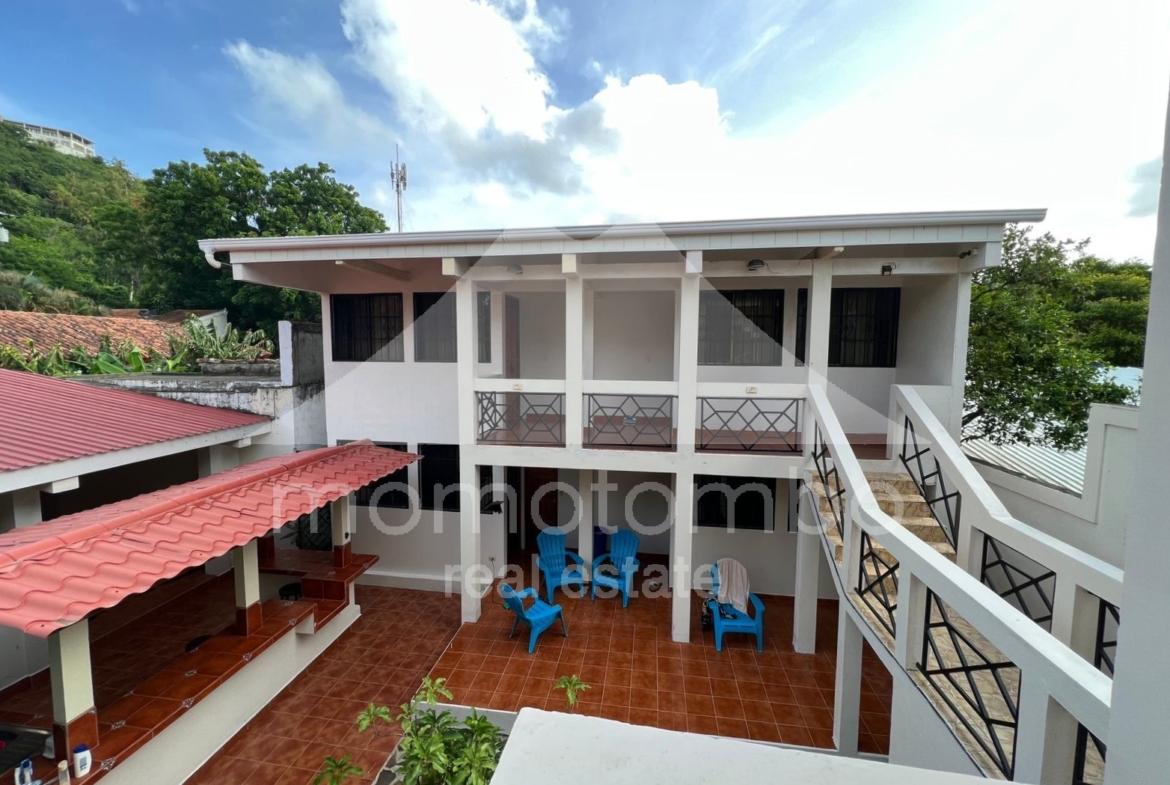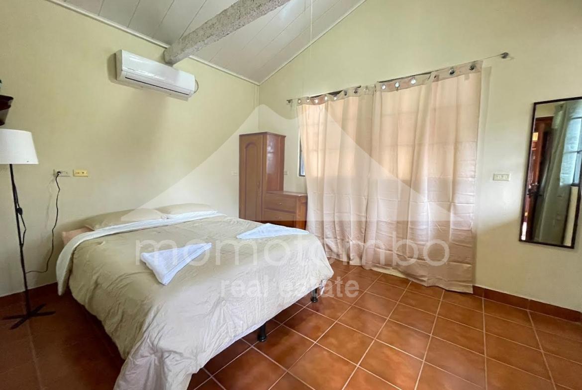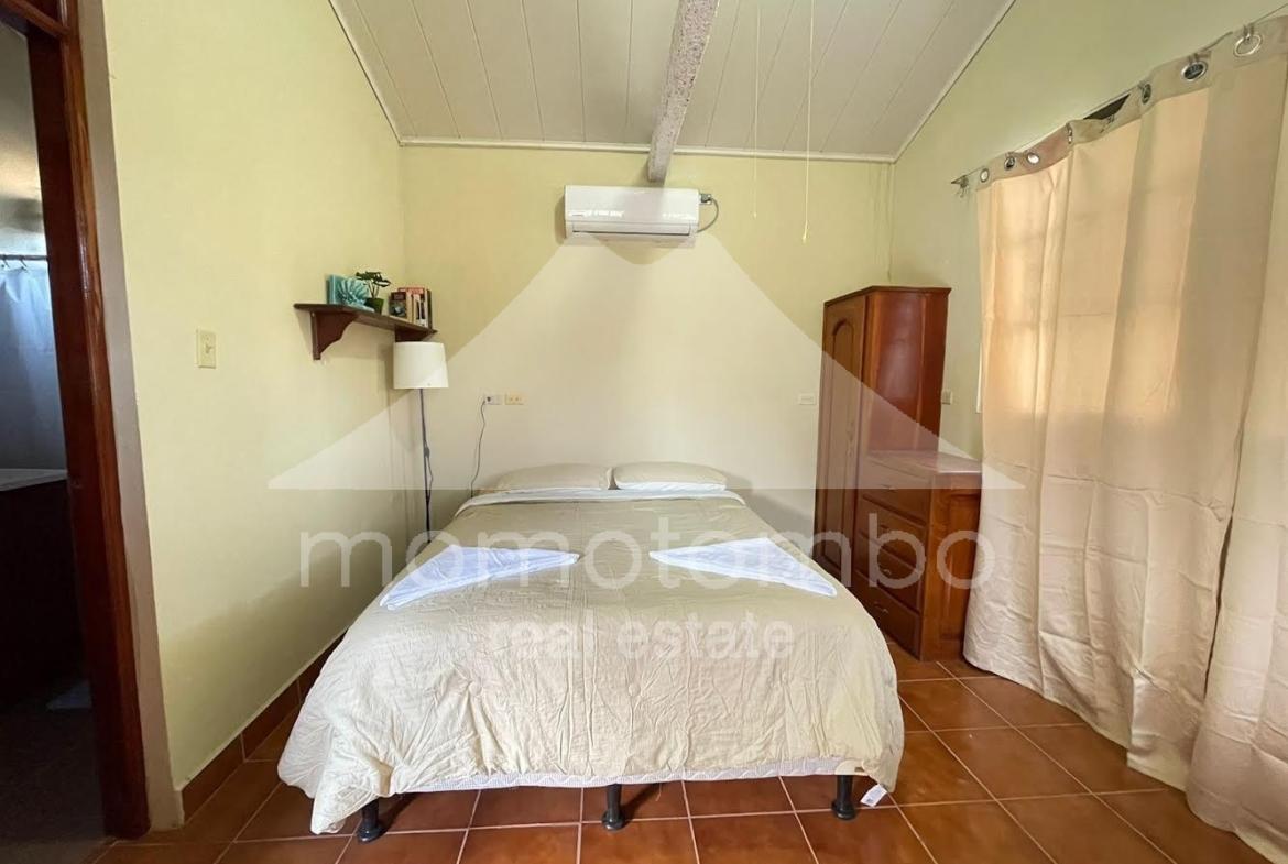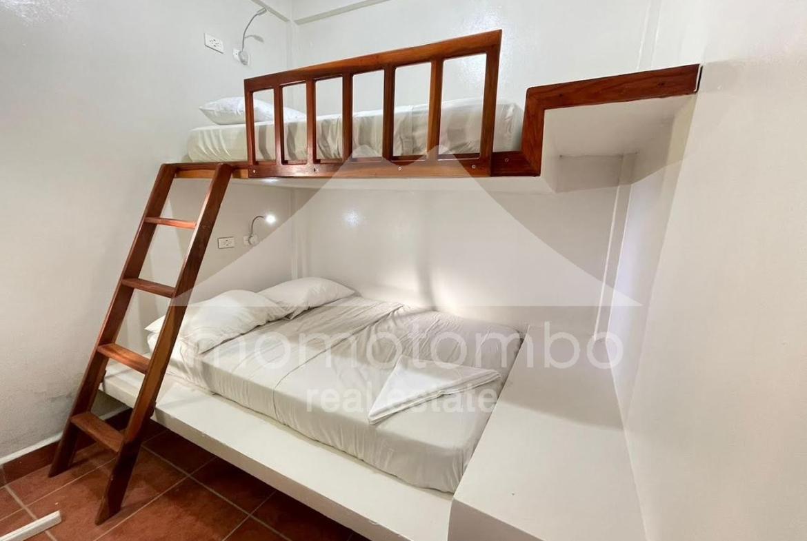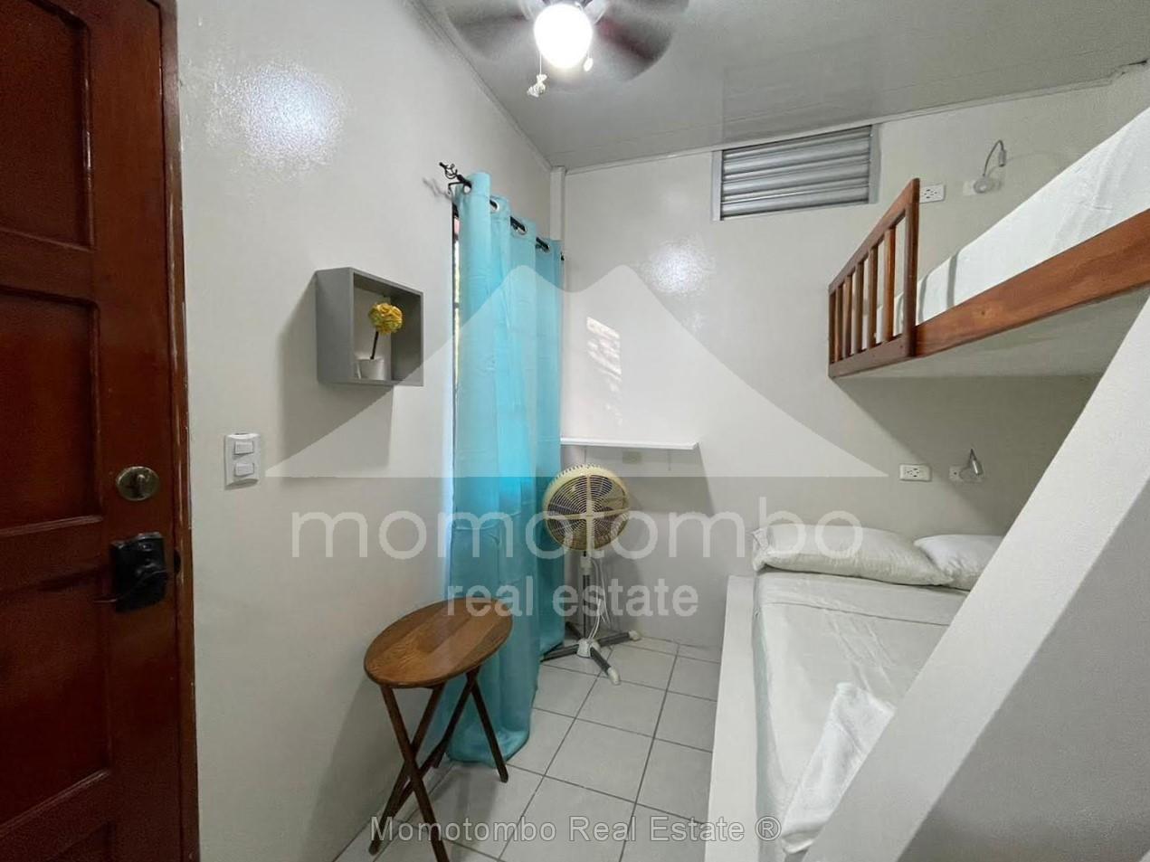 Práctico condominio en renta en San Juan del Sur, a unos pasos de la playa en La Talanguera, con muebles y un total de 5 habitaciones, 5 baños, área social y 2 cocinas. Dispone de 3 habitaciones con cama queen, aire acondicionado y baño propio. Adicionalmente, hay 2 habitaciones con camas sencillas sin aire acondicionado. Si se alquilan todas las habitaciones, el precio es de $300 por noche incluyendo el consumo de electricidad (hasta un máximo a partir del cual se cobra $0.50 por kv), el consumo de agua y la limpieza. También disponible por habitación. Disponibilidad por día, por semana, por mes o por año.