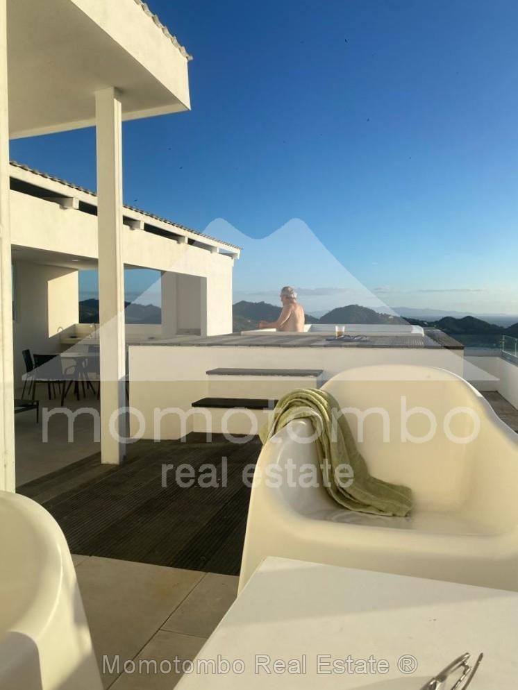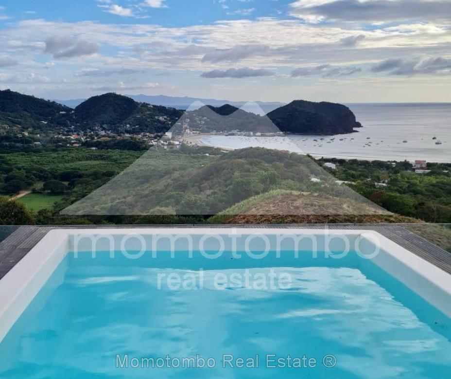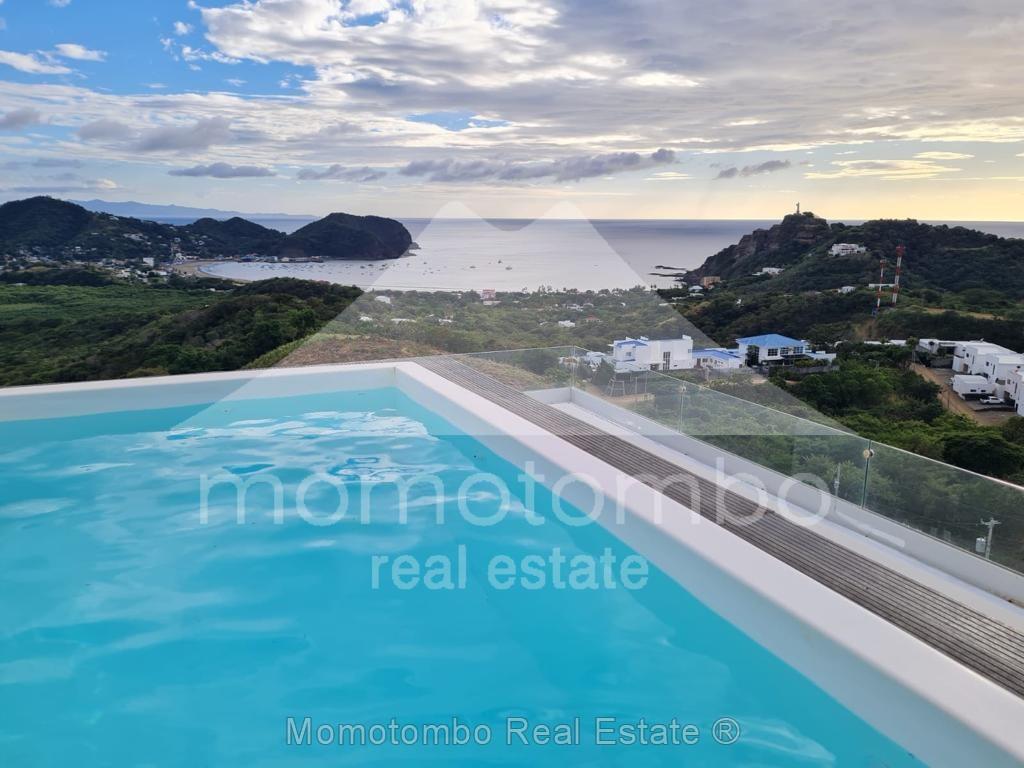 Moderna y lujosa casa en San Juan del Sur con maravillosa vista panorámica, piscina privada y vista excepcional desde la habitación principal en un complejo con piscina en área común. Cuenta con 4 habitaciones, 4 baños y sala-comedor-cocina.