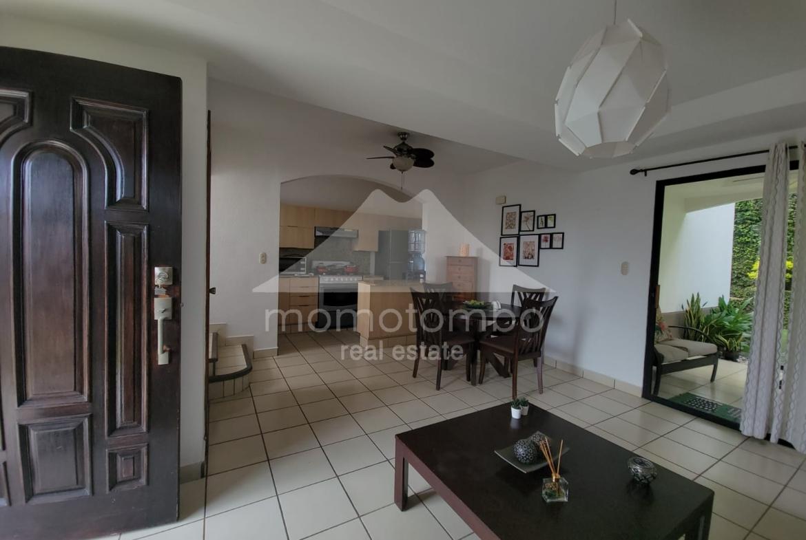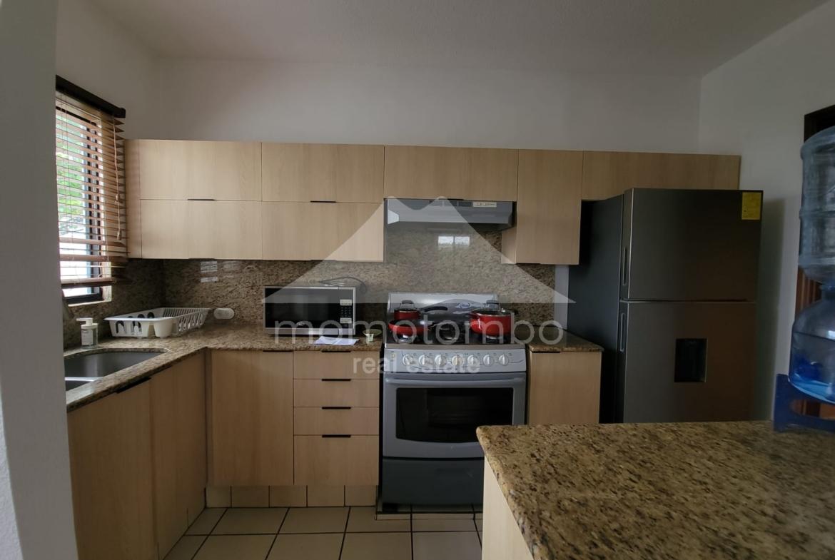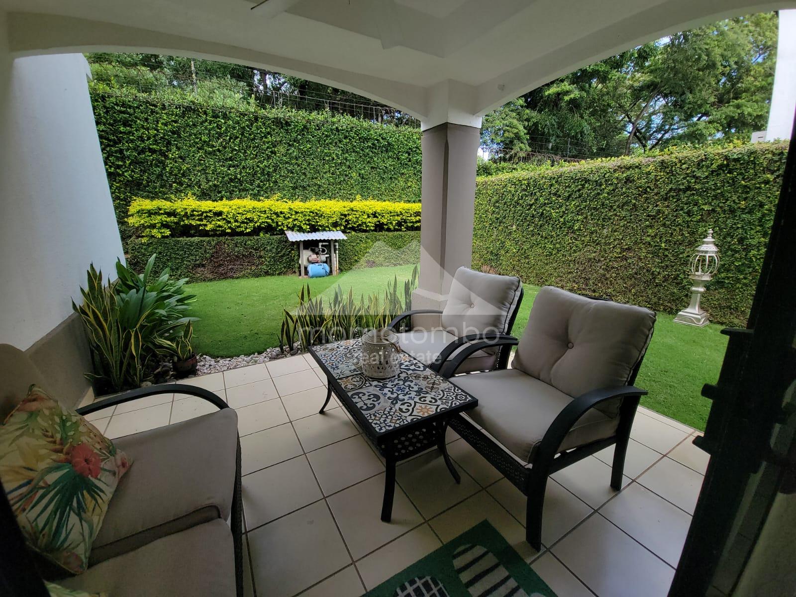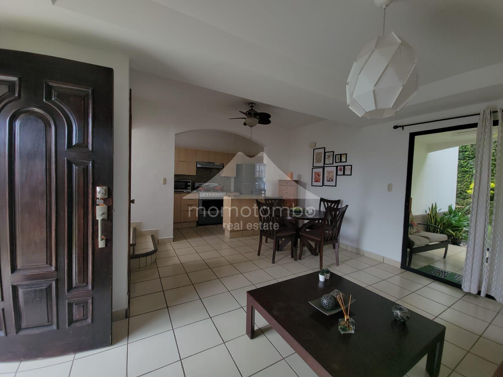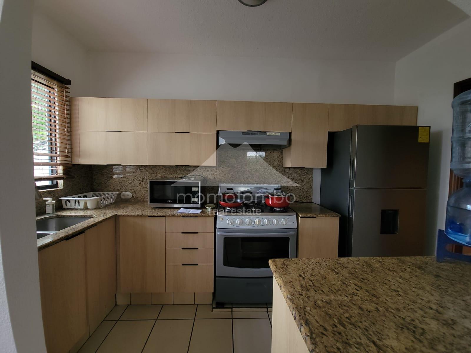 bonita casa de 2 plantas full amueblada, con acceso a piscina y área comunal, ubicada en condominio seguro y céntrico. posee 2 cuartos, 2 1/2 baños, sala-comedor, sala terraza, cocina, 2 terrazas, patio, jardín externo, área de servicio, estacionamiento, calentador de agua eléctrico, aires acondicionados, sistema de agua potable y línea telefónica. vigilancia las 24 horas.