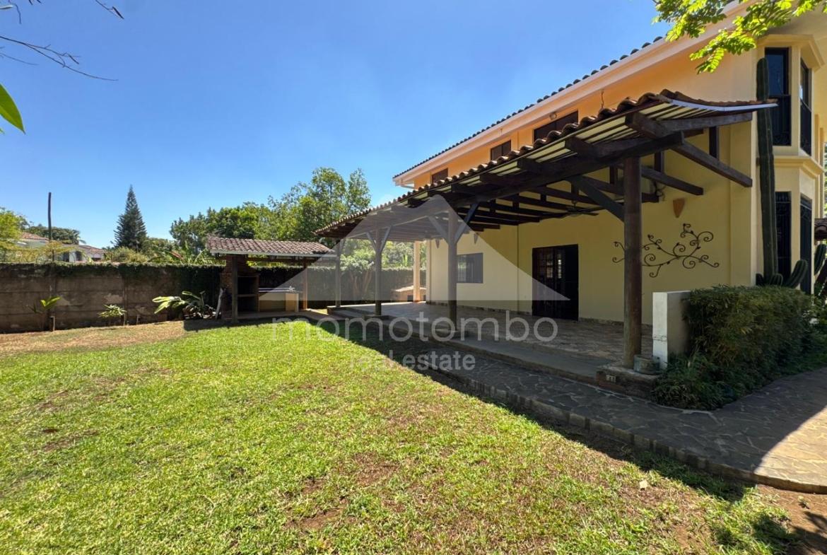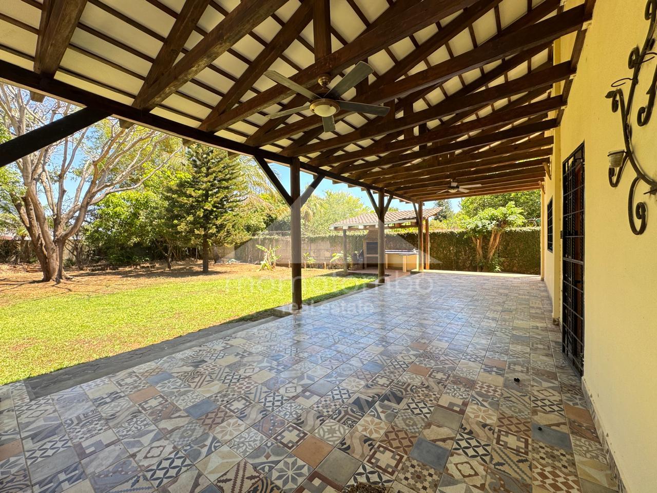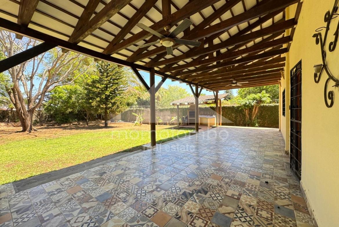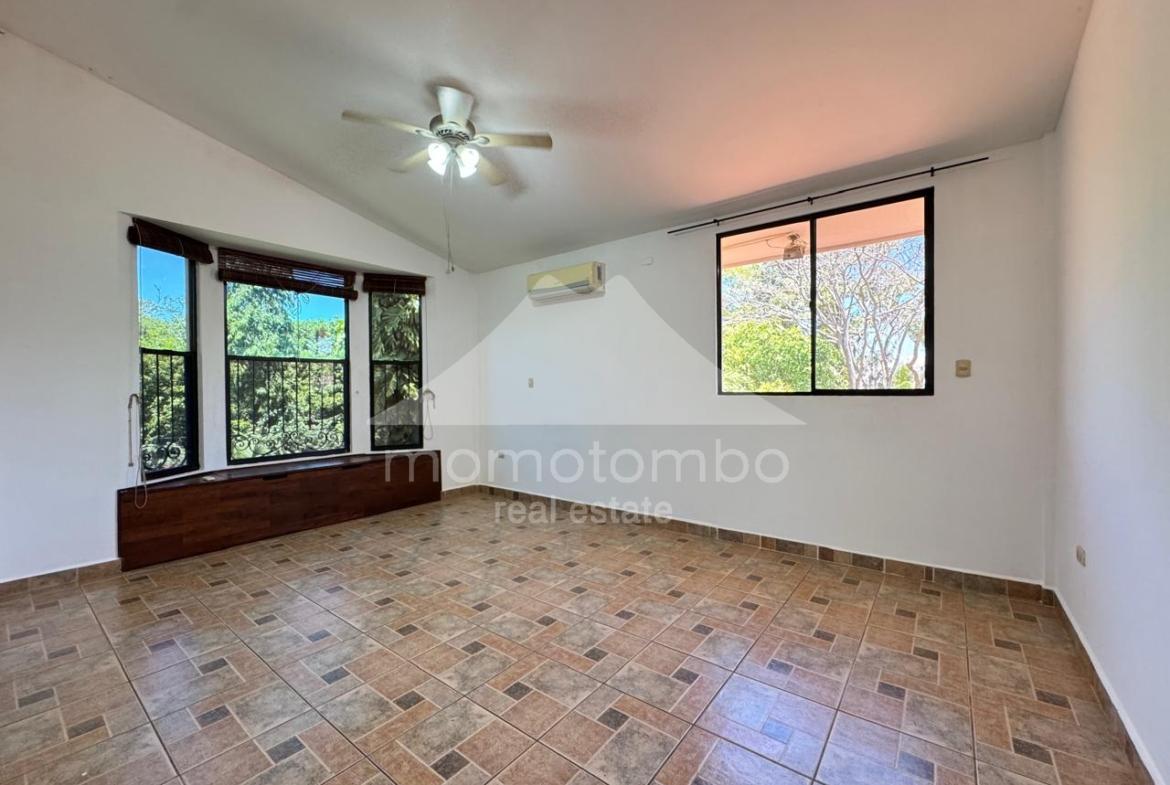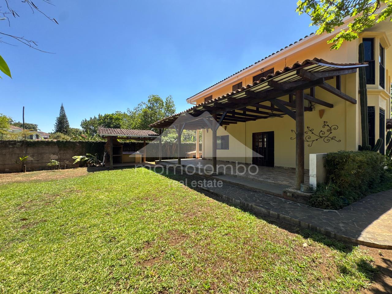 Atractiva residencia de 250 m², luminosa, fresca y segura ubicada dentro de un condominio de pocas unidades a unos pasos del Hospital Vivian Pellas. La propiedad dispone de dos plantas y ofrece ambientes cómodos y bien definidos: 3 espaciosas habitaciones con closets amplios, 2.5 baños, cuarto de servicio con baño, sala familiar, vestíbulo, sala, comedor, espaciosa cocina con isla y alacena, amplia terraza estilo colonial con área de barbacoa, patio con árboles frutales y agradables áreas verdes, casita para dos perros pequeños, sistema de agua caliente, 2 tanques de reserva de agua, tanque de gas de 100 libras y sistema de riego automático. La habitación principal dispone de aire acondicionado y las secundarias cuentan con abanicos de techo. El precio de renta incluye juego de comedor y librero de madera preciosa.