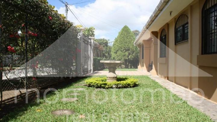 amplia casa con acabados de lujo, fachaleta de ceramica en sala, top de granito en cocina y desayunador, cuarto principal con baño propio, puertas corredizas francesas, portón de acceso a garaje, amplio jardín engramado, vigilancia las 24/7, amplia terraza y baño completo para visita.