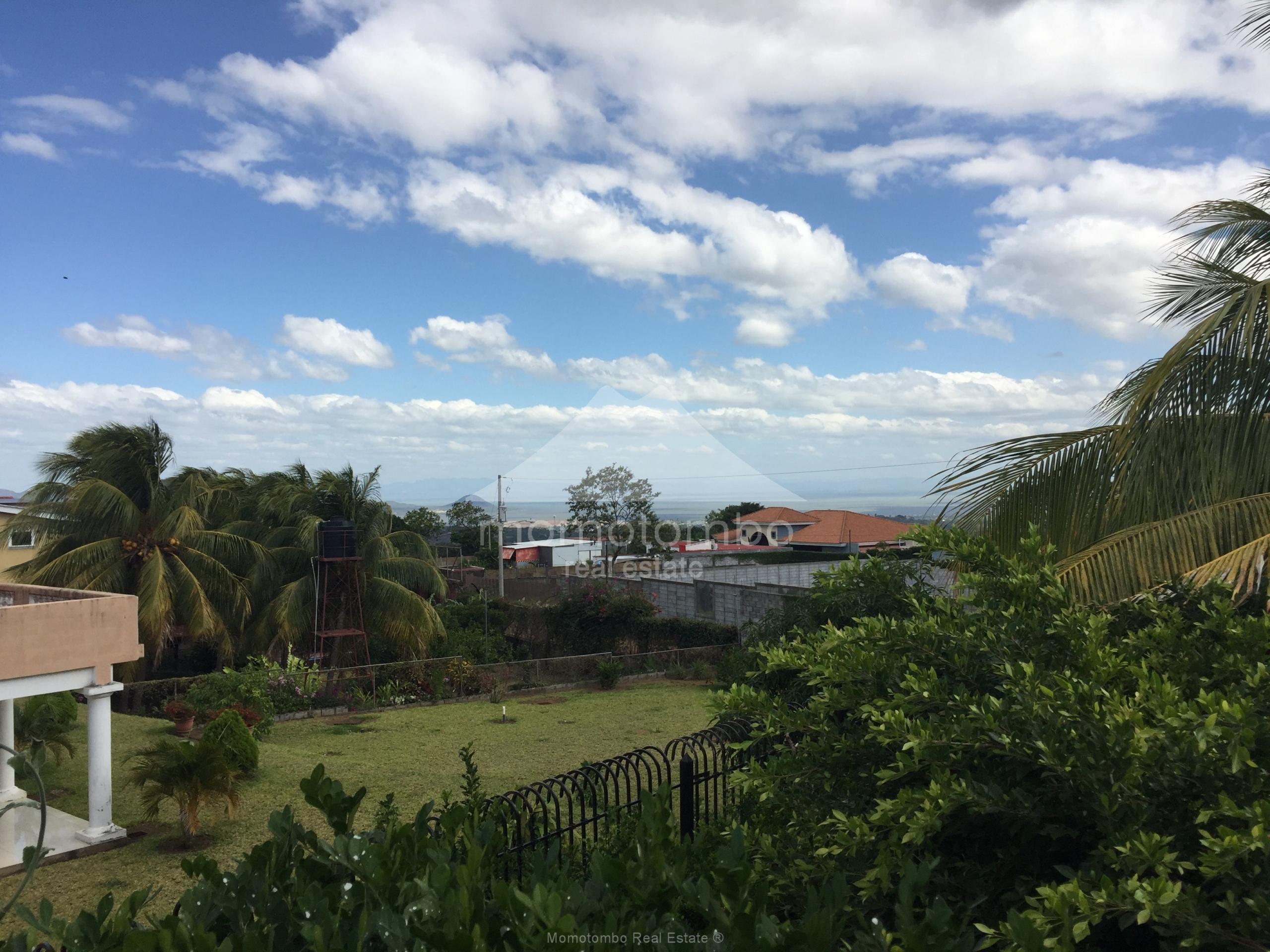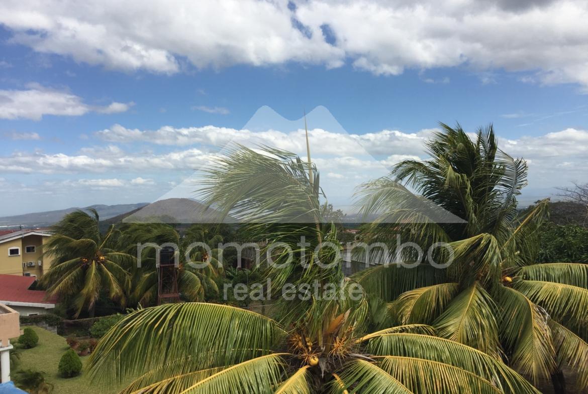 Bonita residencia de 350 m2 distribuidos en dos plantas, ubicada en Carretera Sur, zona de clima fresco, con preciosa vista panorámica al Lago Xolotlan y parte de Managua. El primer nivel cuenta con 2 habitaciones, 1 baño, sala, comedor, cocina, cuarto y baño de servicio, parqueo para para 6 vehículos y carport. El segundo nivel consta de 3 habitaciones (la habitación principal con balcón y vista panorámica), 3 baños, sala con área de bar, acceso al patio posterior, terraza campestre con techo de teja y madera y 3 tanques de reserva de agua con bomba hidroneumatica.