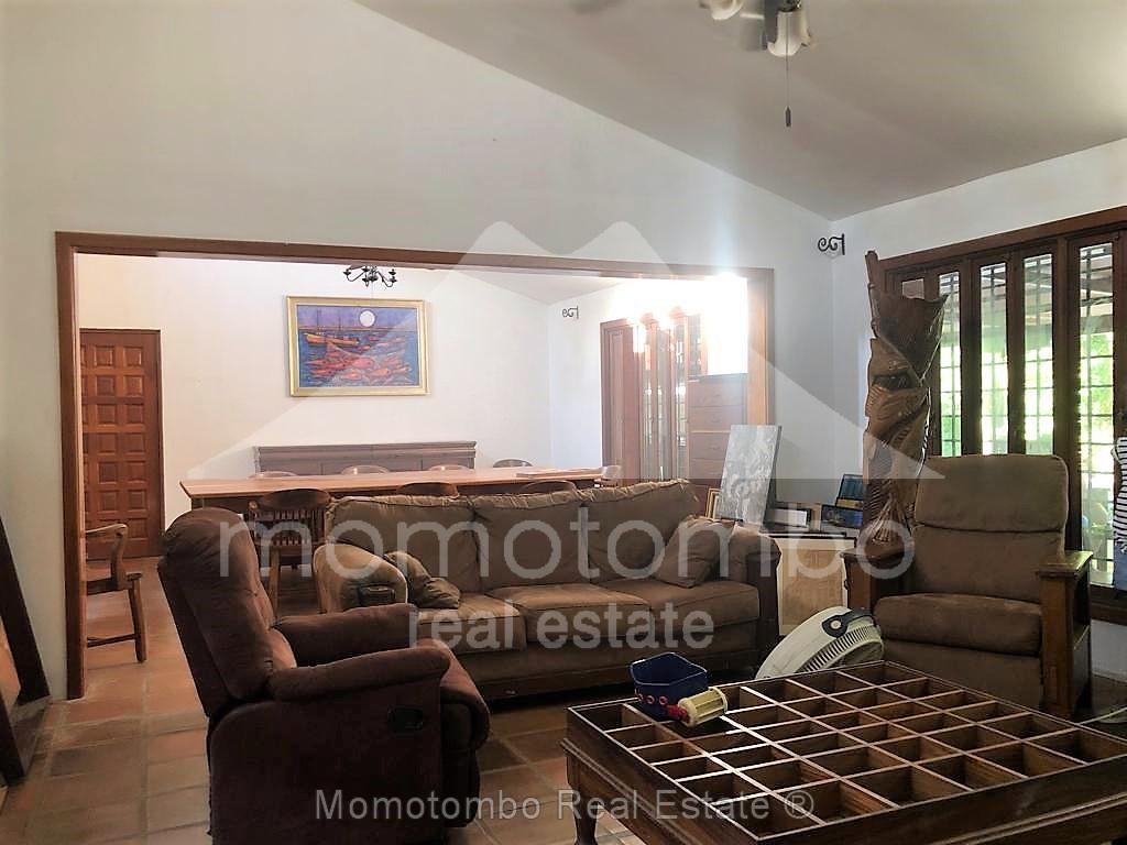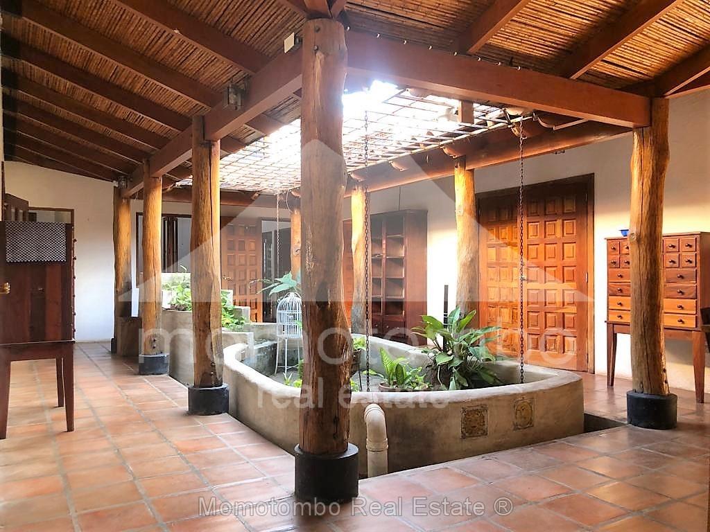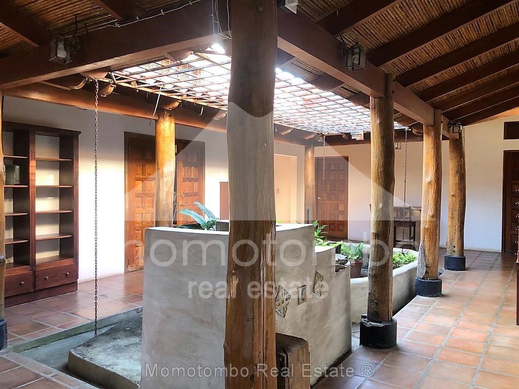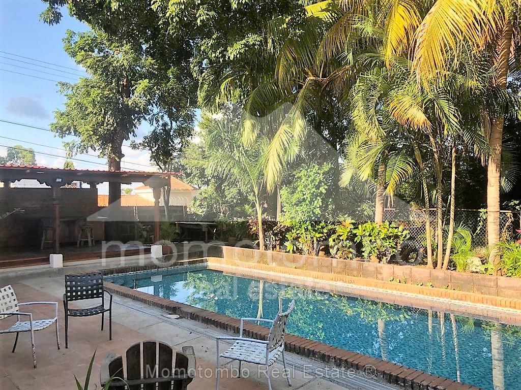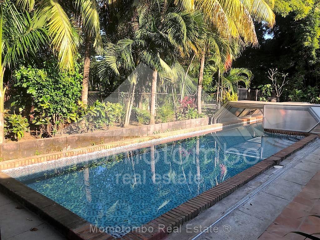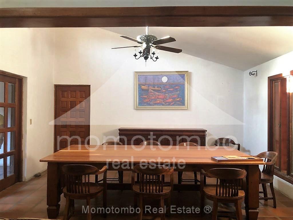 Casa estilo colonial español con piscina y muros perimetrales con serpentina en El Mirador de Santo Domingo, muy bien ubicada y resguardada del ruido, con una construcción de 440 m2 (con 200 m2 adicionales de corredores) en un hermoso terreno de 3,500 v2. Cuenta con 4 habitaciones (incluyedo 2 principales), espaciosa oficina, 3 baños, sala familiar, patio interno, sala, comedor, 35 m2 de cocina, 200 m2 de terrazas, área de taller, cuarto y baño de servicio, área de lavandería, estacionamiento interno, portón eléctrico, agua caliente solar, tanque de almacenamiento de agua, abanicos de techo y sistema de circulación de aire pasivo que no requiere aire acondicionado. Goza de gran cantidad de madera preciosa como caoba, cedro real y guayacán así como de pilares de madera de mangle. Todos los espacios están conectados por un patio interior que brinda iluminación natural a todos los ambientes.