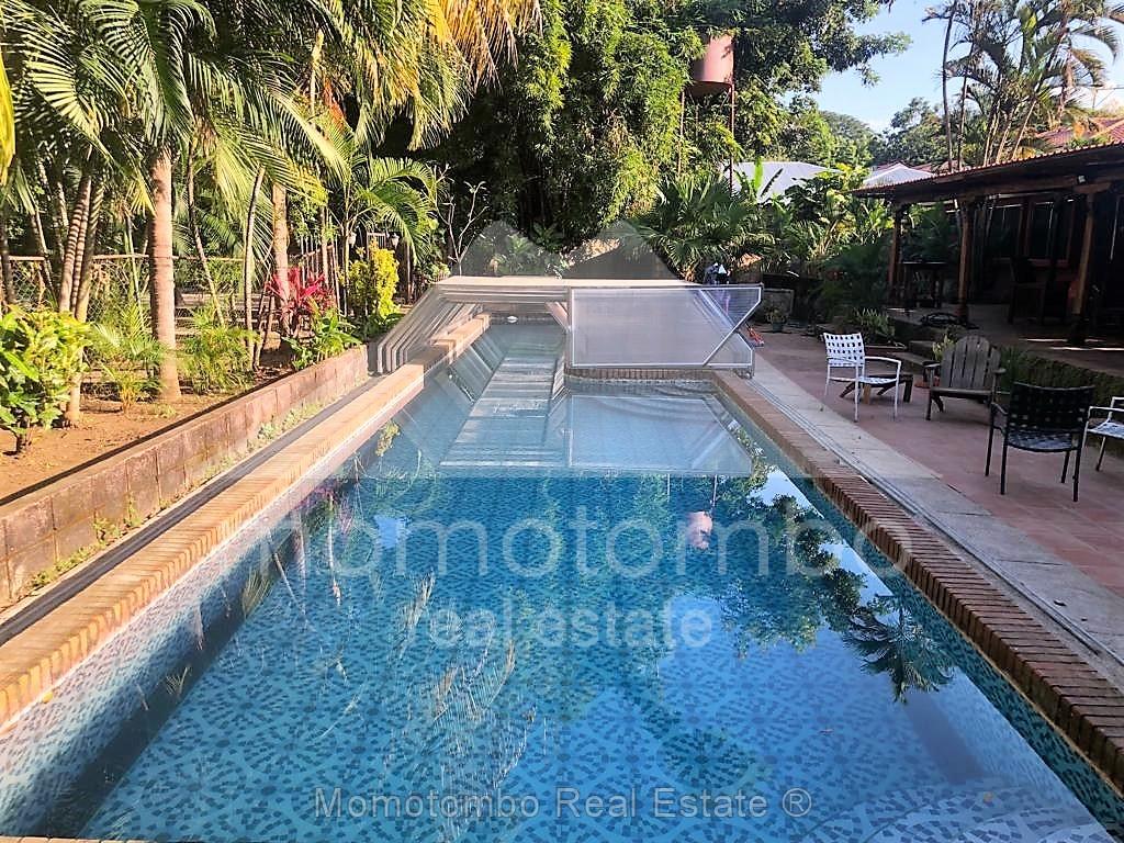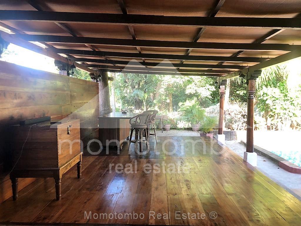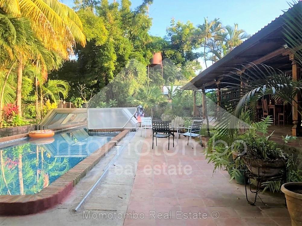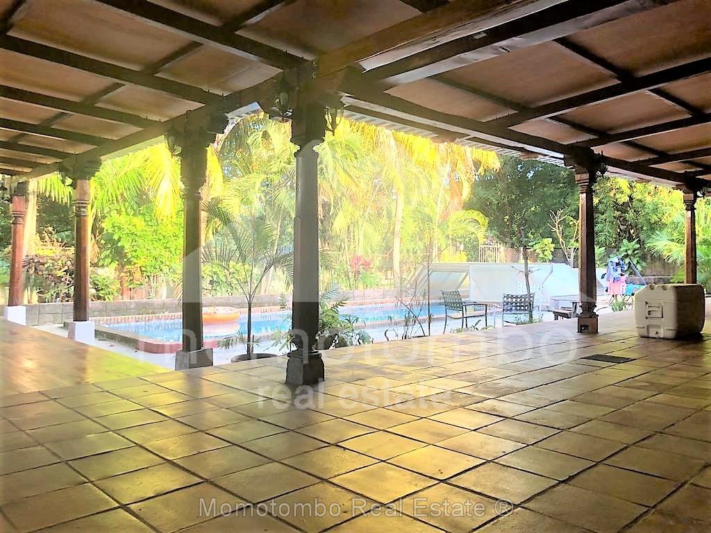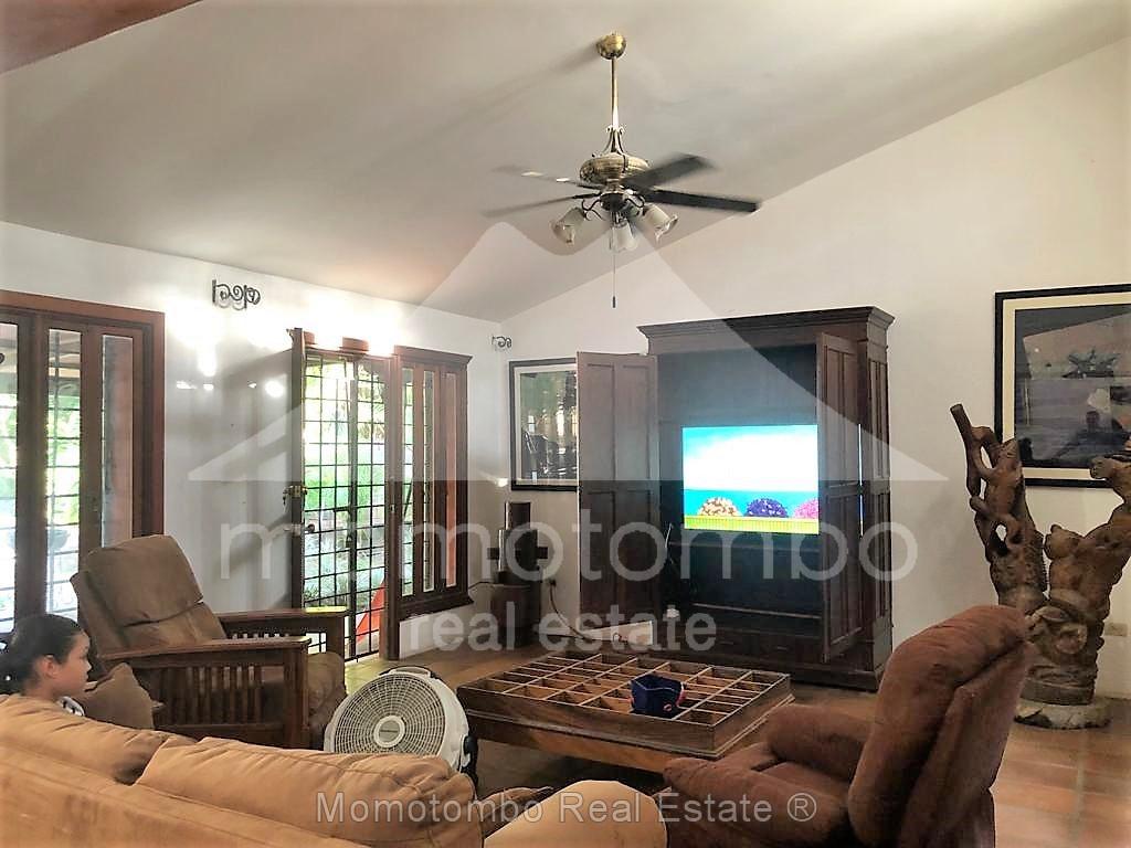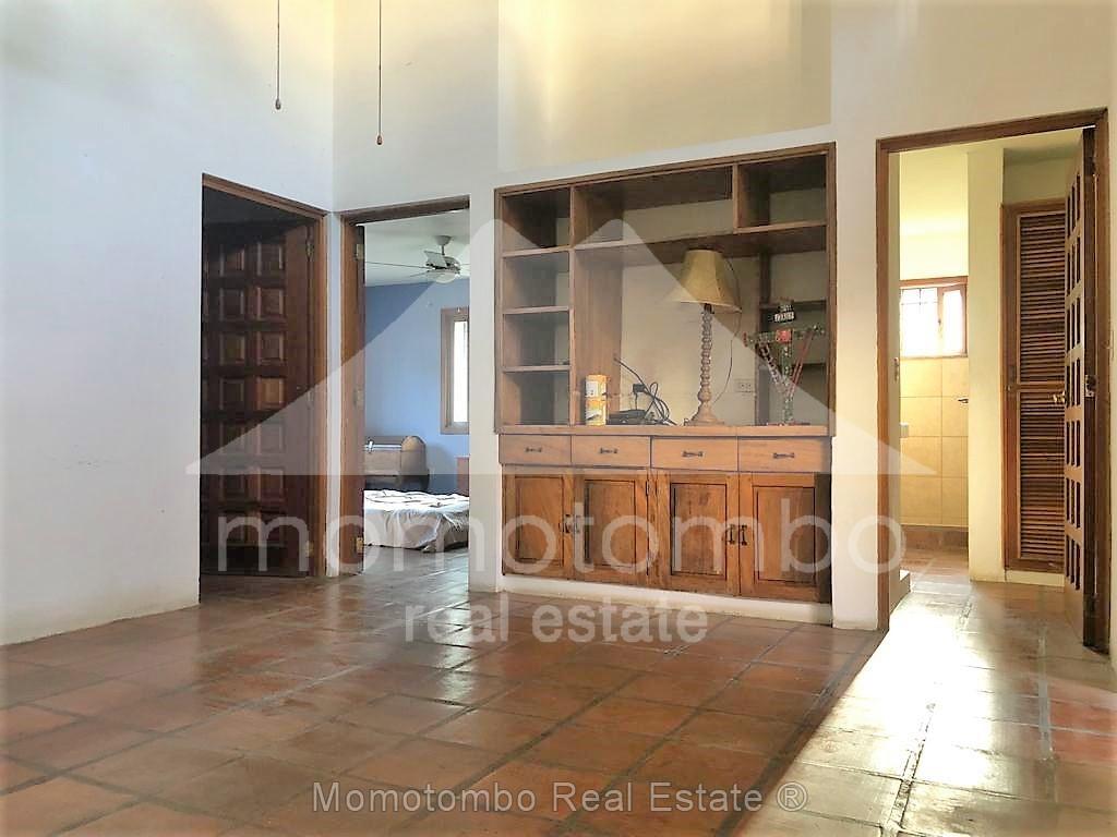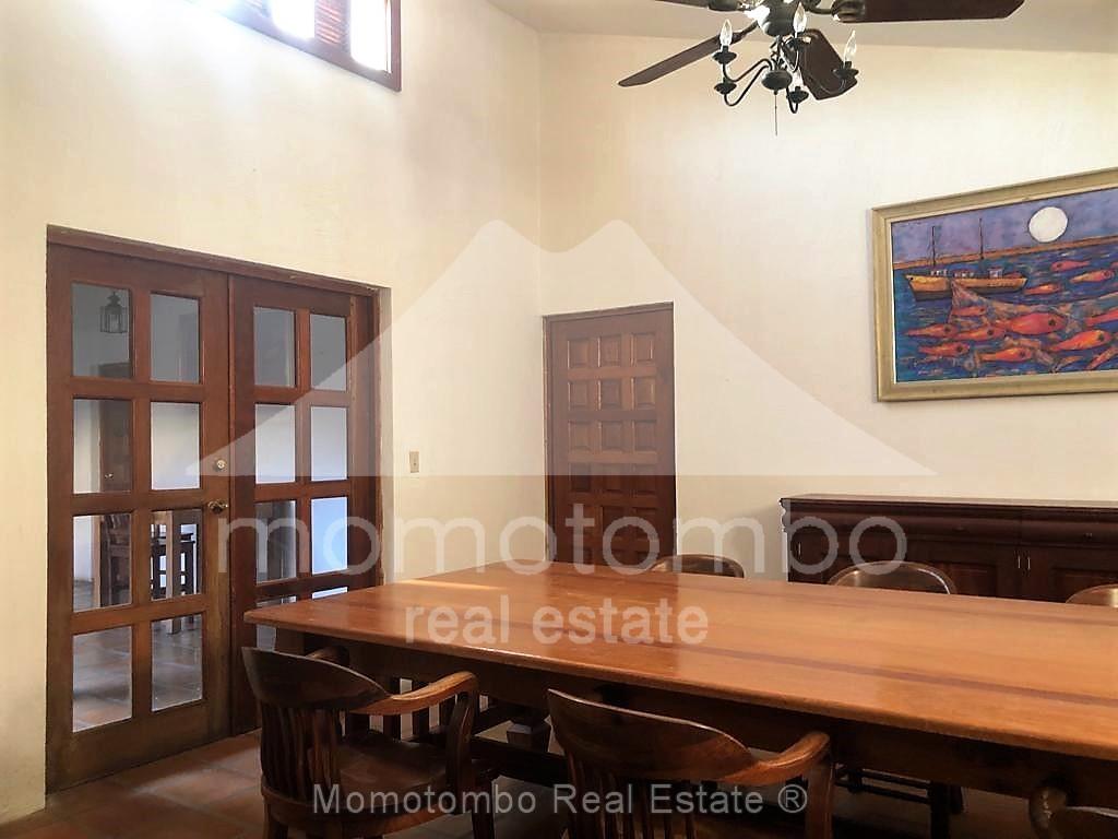 Casa estilo colonial español con piscina y muros perimetrales con serpentina en El Mirador de Santo Domingo, muy bien ubicada y resguardada del ruido, con una construcción de 440 m2 (con 200 m2 adicionales de corredores) en un hermoso terreno de 3,500 v2. Cuenta con 4 habitaciones (incluyedo 2 principales), espaciosa oficina, 3 baños, sala familiar, patio interno, sala, comedor, 35 m2 de cocina, 200 m2 de terrazas, área de taller, cuarto y baño de servicio, área de lavandería, estacionamiento interno, portón eléctrico, agua caliente solar, tanque de almacenamiento de agua, abanicos de techo y sistema de circulación de aire pasivo que no requiere aire acondicionado. Goza de gran cantidad de madera preciosa como caoba, cedro real y guayacán así como de pilares de madera de mangle. Todos los espacios están conectados por un patio interior que brinda iluminación natural a todos los ambientes.
