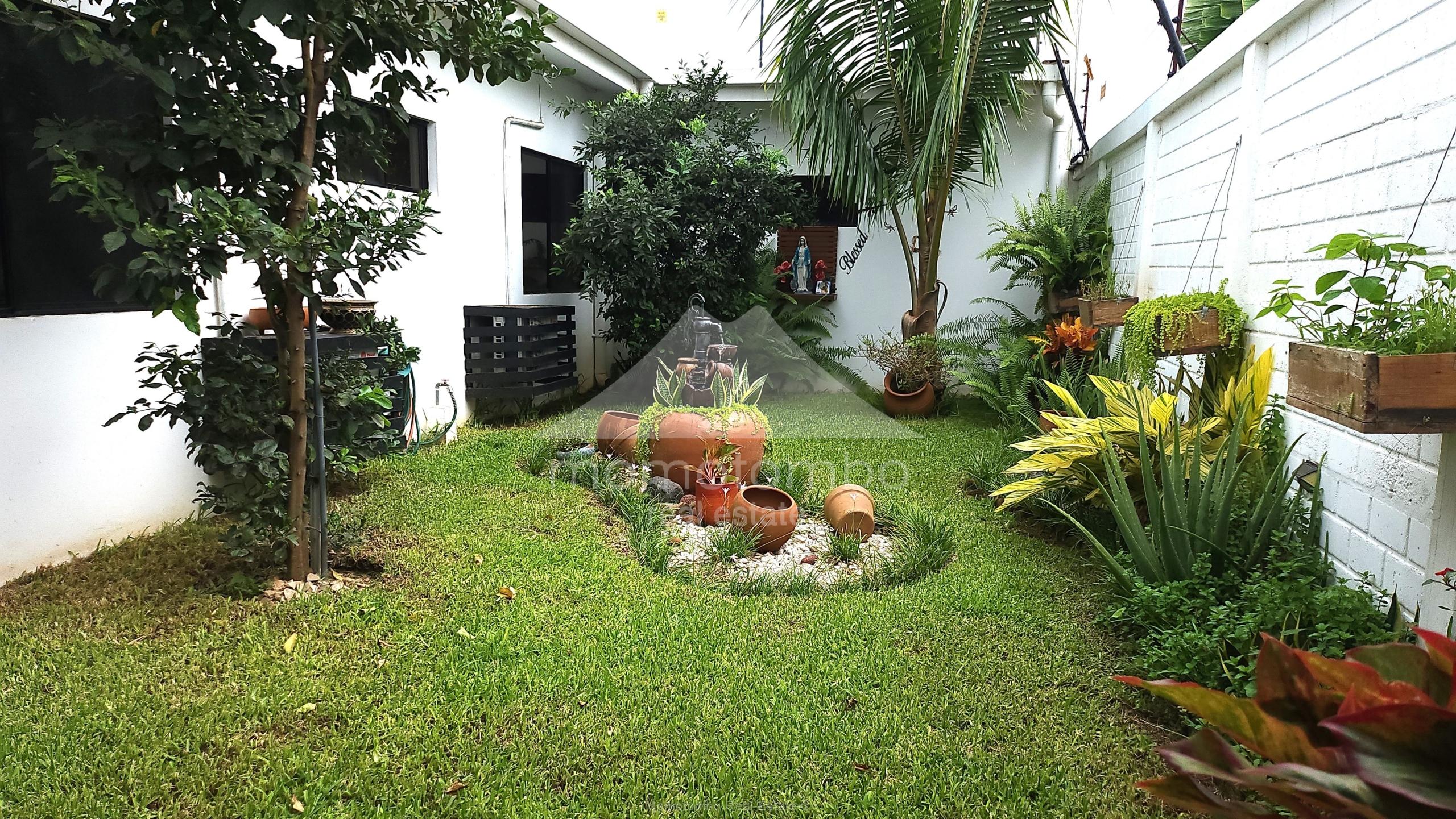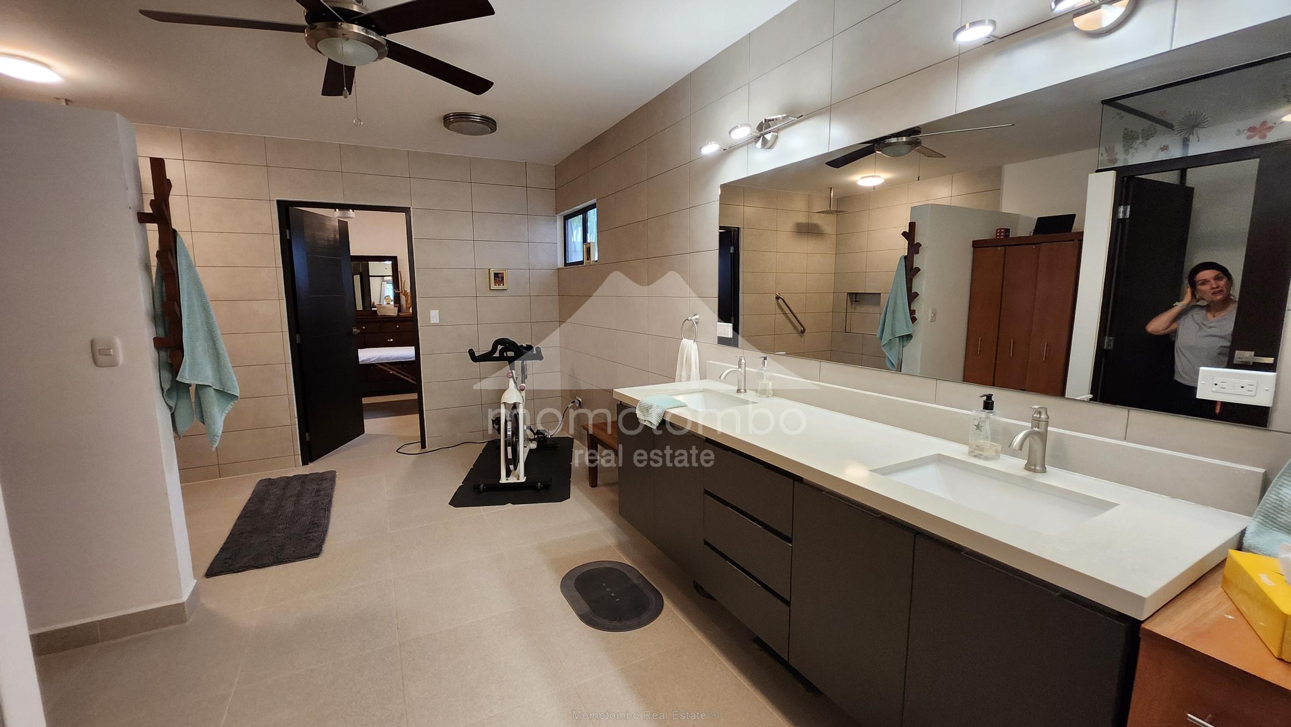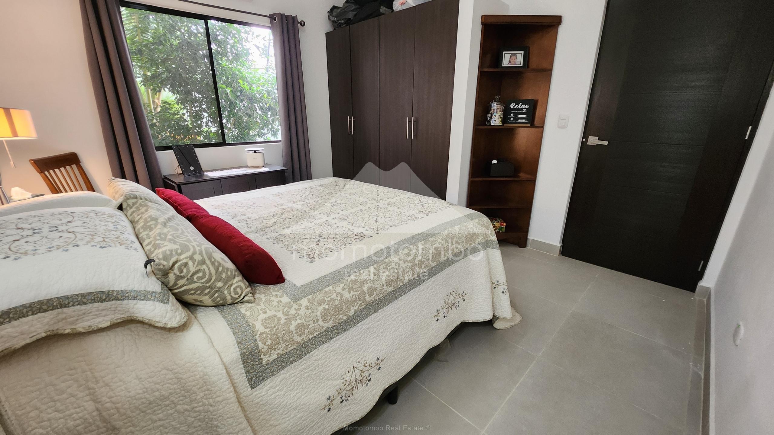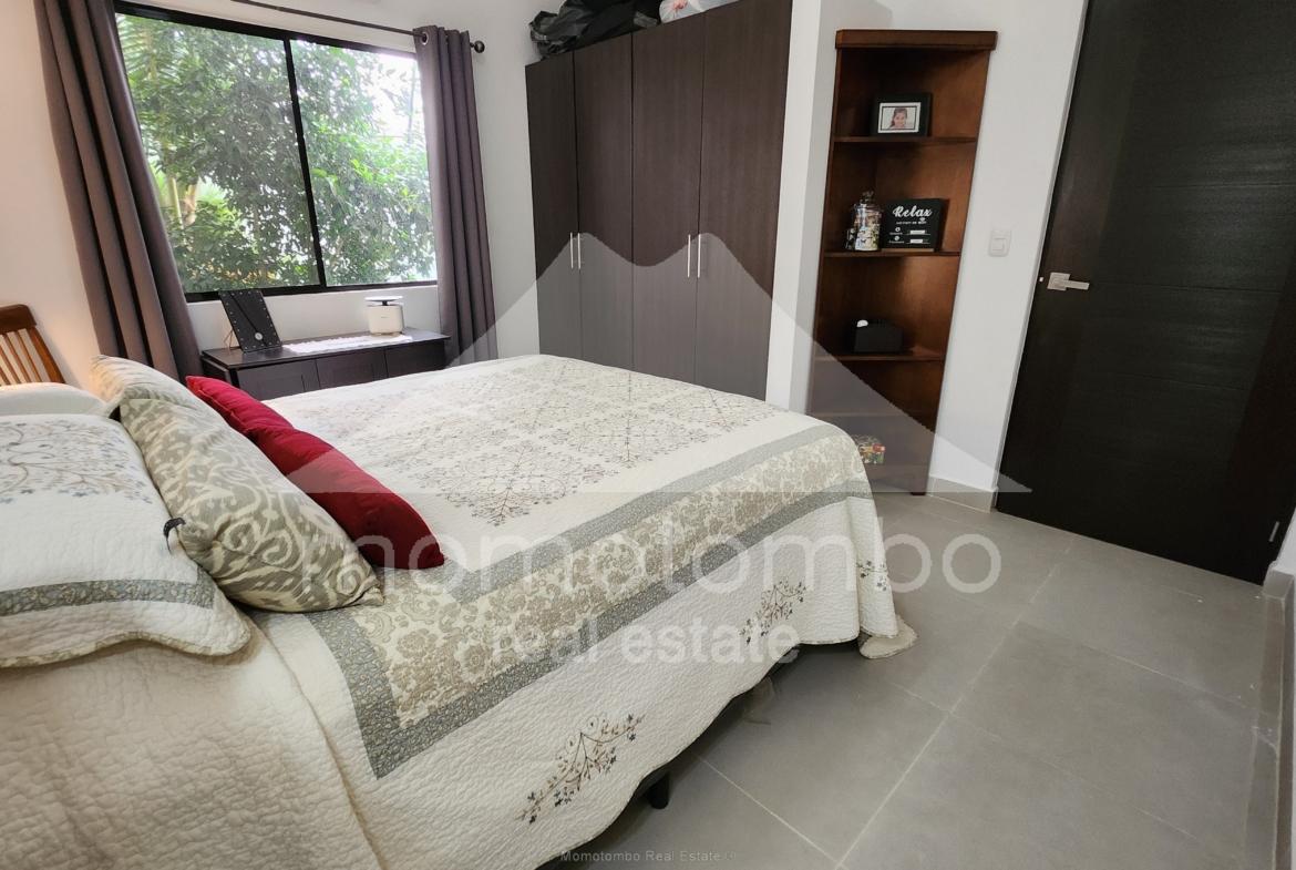 Hermosa casa de 330 m2 para estrenar, totalmente climatizada, a pocos minutos del centro de Managua, con terreno doble que totaliza 1012 vr2 en un residencial exclusivo con seguridad 24/7, cerca de supermercados, plazas comerciales y a pocos metros de la Carretera a Masaya. Cuenta con 4 habitaciones con sus closets, 2 baños, cuarto principal con amplio walk-in closet con diseño exclusivo para mantener todo ordenado, cuarto y baño de servicio, baño de visitas, 2 espaciosas terrazas con jardines, 12 paneles solares (incluido sistema eléctrico diseñado para distribuir la energía adecuadamente), cisterna con bomba hidroneumática, agua caliente y bodega. Adicionalmente, hay un apartamento con entrada independiente que mide 54 mt2 (baño y cocina-sala estilo estudio); bodega y estacionamiento para 3 vehículos. Cuenta con 6 aires acondicionados inverter. El área de cocina cuenta con isla, cocina empotrada, extractor de grasa, horno y microondas. área de lavandería techada, amplios portones y cerca eléctrica. Zona segura y exclusiva de Managua piscina comunal y area de recreación.