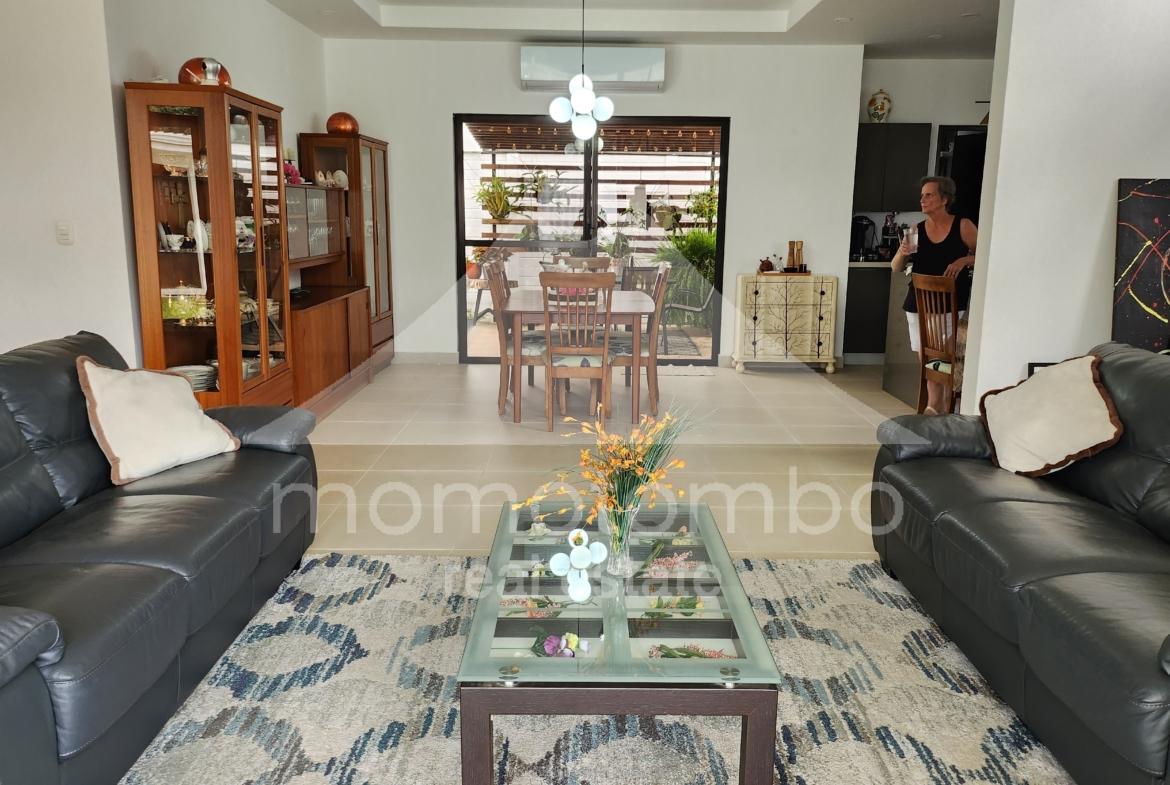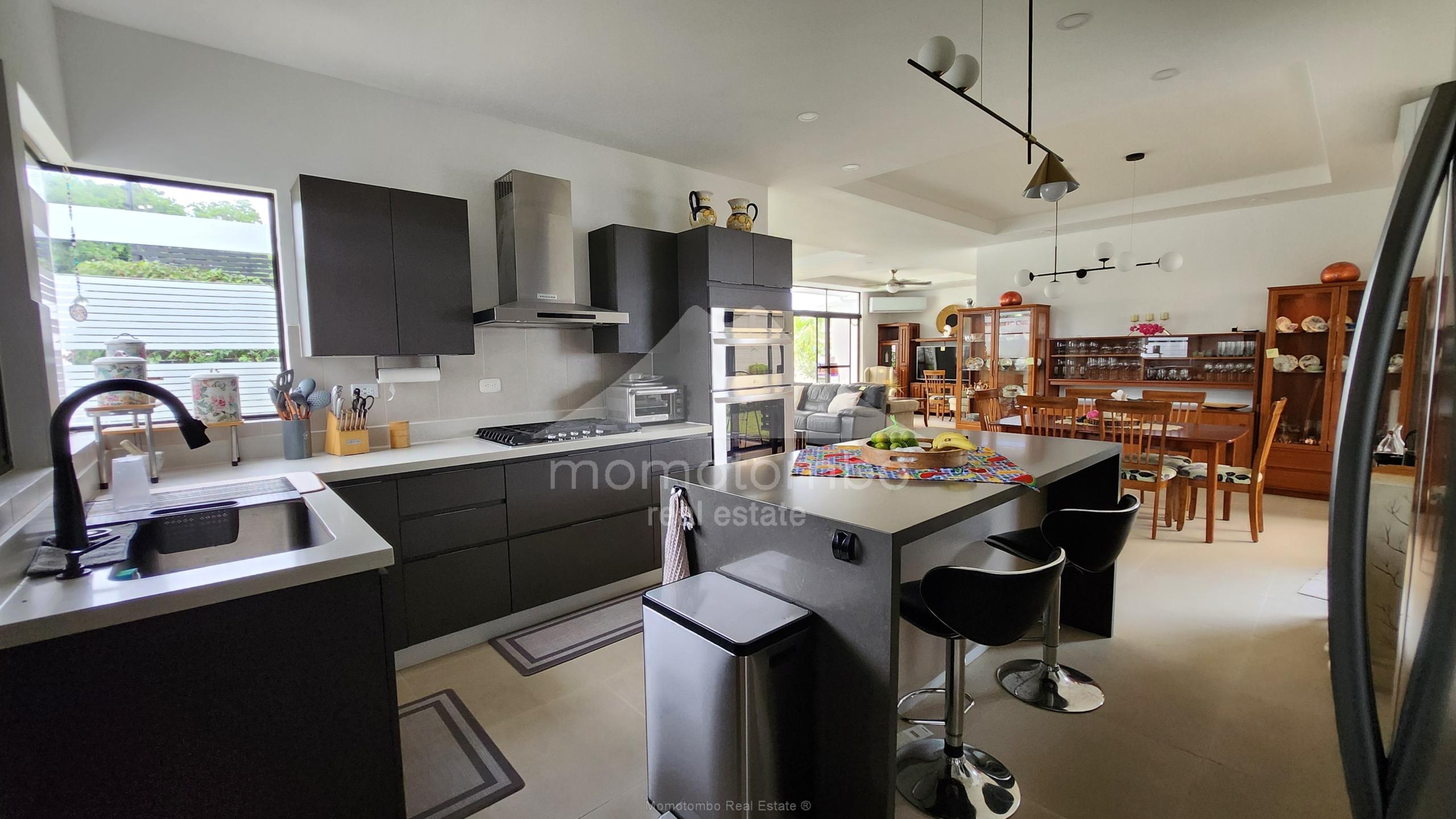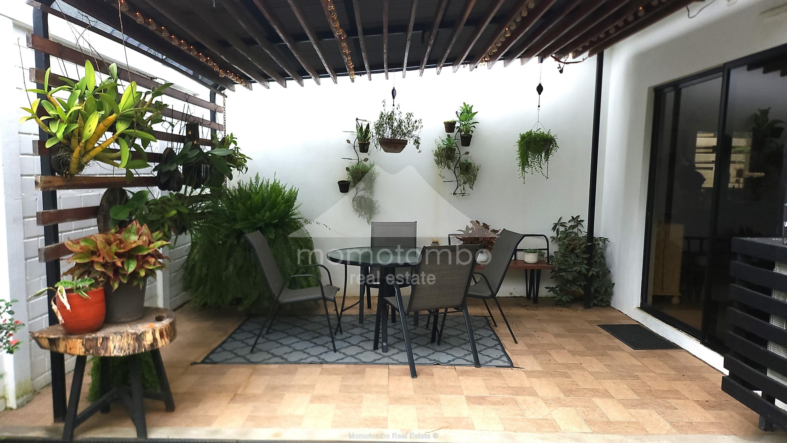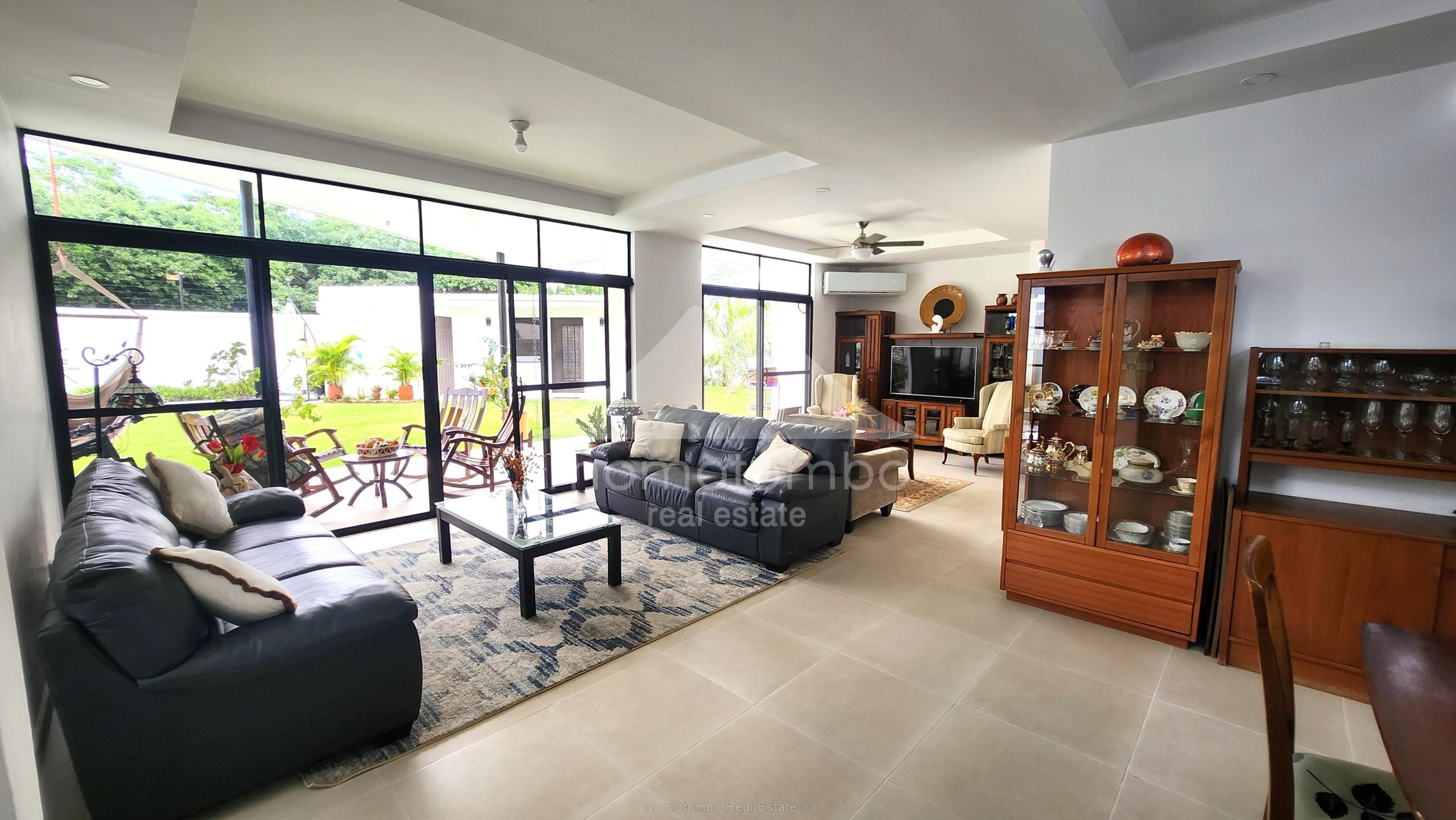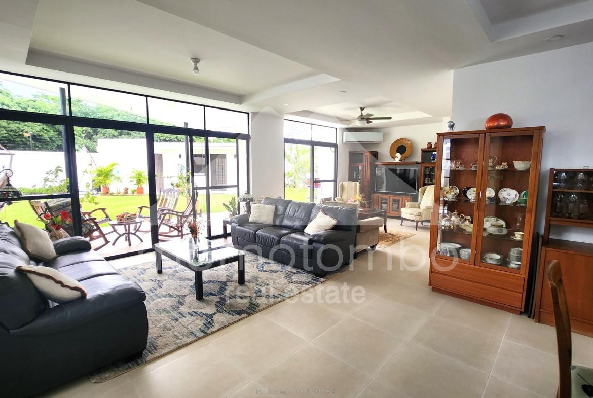 Hermosa casa de 330 m2 para estrenar, totalmente climatizada, a pocos minutos del centro de Managua, con terreno doble que totaliza 1012 vr2 en un residencial exclusivo con seguridad 24/7, cerca de supermercados, plazas comerciales y a pocos metros de la Carretera a Masaya. Cuenta con 4 habitaciones con sus closets, 2 baños, cuarto principal con amplio walk-in closet con diseño exclusivo para mantener todo ordenado, cuarto y baño de servicio, baño de visitas, 2 espaciosas terrazas con jardines, 12 paneles solares (incluido sistema eléctrico diseñado para distribuir la energía adecuadamente), cisterna con bomba hidroneumática, agua caliente y bodega. Adicionalmente, hay un apartamento con entrada independiente que mide 54 mt2 (baño y cocina-sala estilo estudio); bodega y estacionamiento para 3 vehículos. Cuenta con 6 aires acondicionados inverter. El área de cocina cuenta con isla, cocina empotrada, extractor de grasa, horno y microondas. área de lavandería techada, amplios portones y cerca eléctrica. Zona segura y exclusiva de Managua piscina comunal y area de recreación.