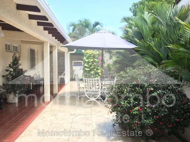 Hermosa casa céntrica de 476.94 mt2 + precioso apartamento anexo de 173.29 mt2 con muros perimetrales, carport y enorme estacionamiento interno, en buen estado de mantenimiento, muy cerca de la antigua Embajada Americana, accesible a medios de transporte público. La casa posee 5 amplias habitaciones, 4 baños, cuarto y baño de servicio aparte, sala grande con techo alto, área de comedor, espaciosa cocina doble, lindo patio interno con fuente, área social grande con jardín engramado, terraza frontal, garaje techado, área de lavandería y pasillos. El apartamento dispone de un amplio dormitorio con estudio, 2 closets y baño privado, espaciosa sala familiar con baño, hermosa área de comedor, amplia y agradable terraza y bello patio interno enladrillado con plantas ornamentales. Este bello apartamento cuenta con 2 unidades de aire acondicionado inverter y abanicos de techo. La propiedad posee un tanque de agua plástico en estructura metálica.