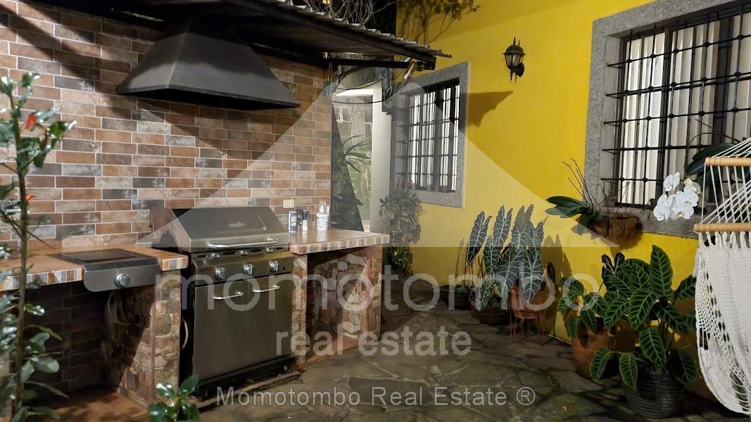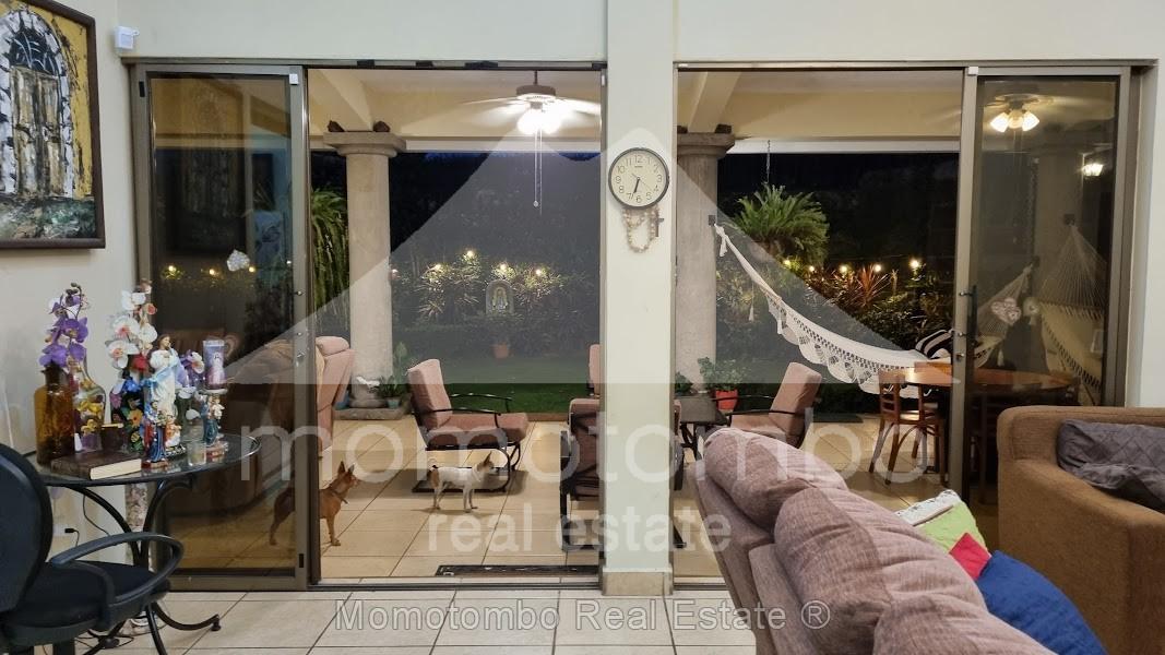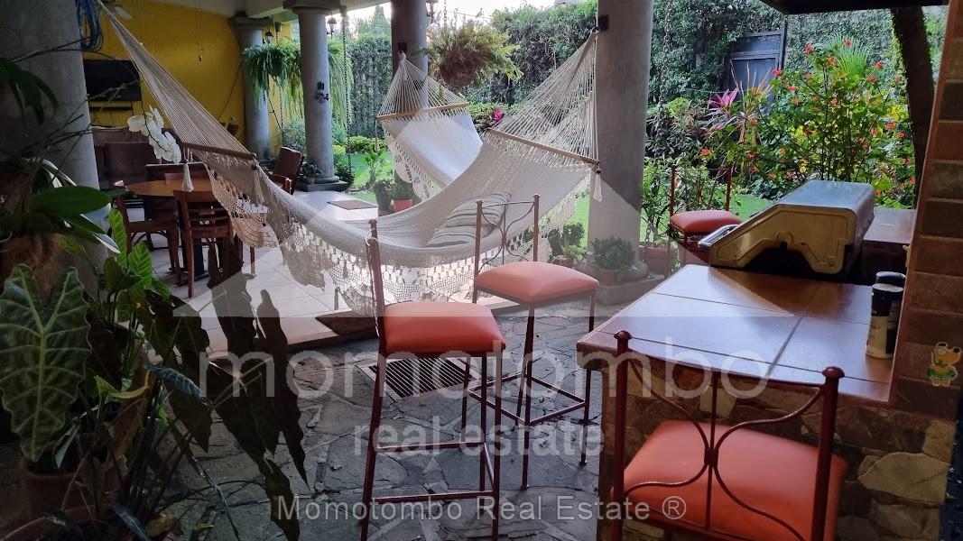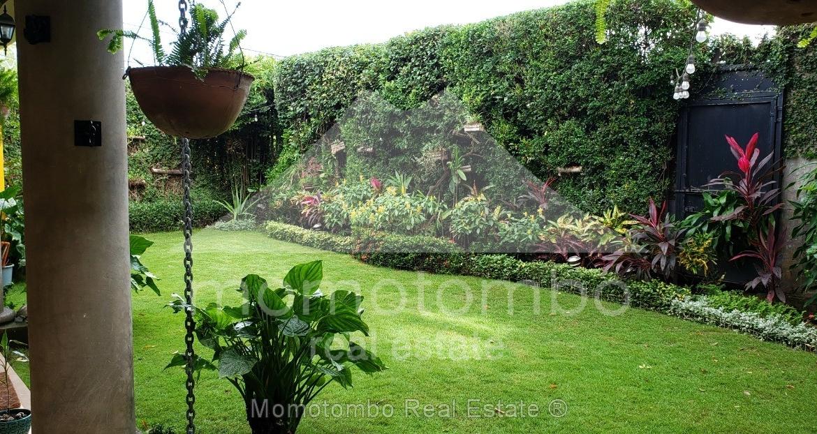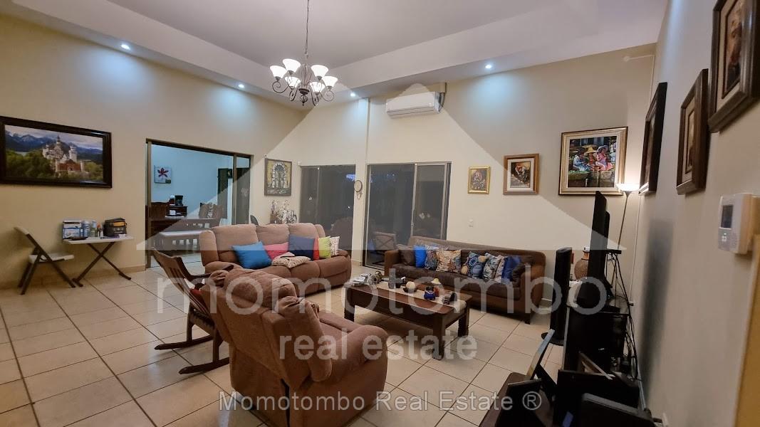 Agradable casa de 315 m2 con techos altos, amplios y armoniosos ambientes, preciosa terraza con área de barbacoa, bonito jardín y muros perimetrales con cerca eléctrica en una calle privada de Las Colinas muy cerca de Galerías Santo Domingo. Cuenta con 4 habitaciones con a/c, 3 baños, cuarto y baño de servicio, una sala muy amplia y luminosa integrada a una hermosa terraza de 60 m2, área de comedor también integrada a la terraza, espaciosa cocina, área de lavado y planchado y estacionamiento interno para 4 vehiculos, Goza de techo y cielo raso nuevos con aislante térmico, 6 unidades de aire acondicionado (en habitaciones, sala y comedor), abanicos de techo en todos los ambientes, sistema de agua caliente, cisterna con bomba hidroneumática, alarma, sensores, botón de pánico y sistema de cámaras de seguridad.