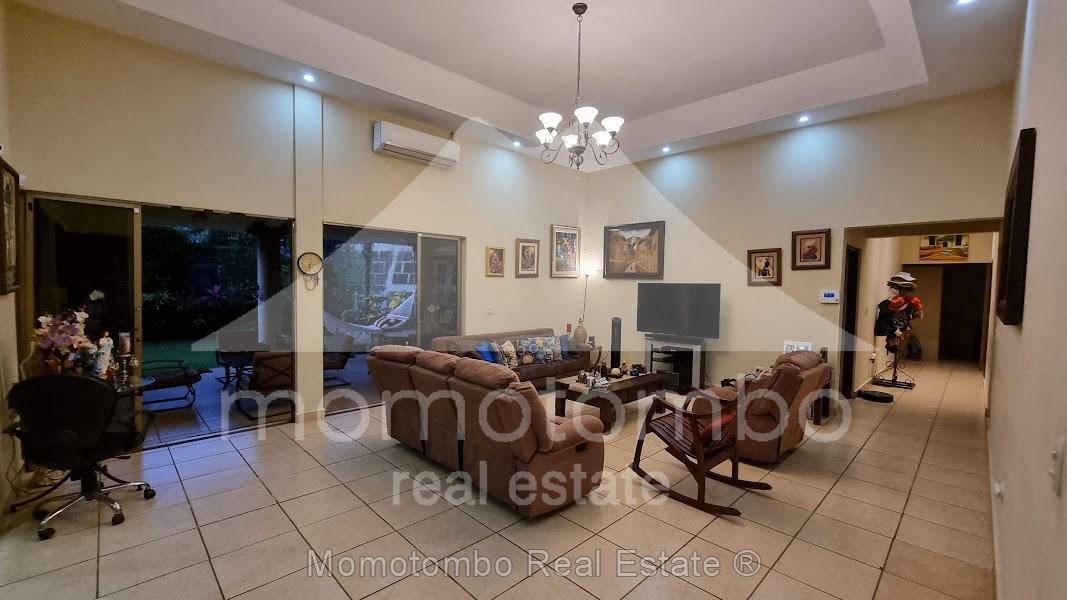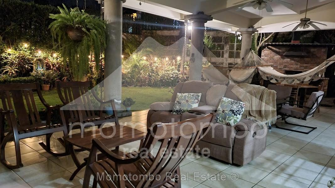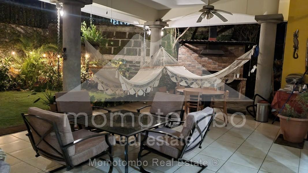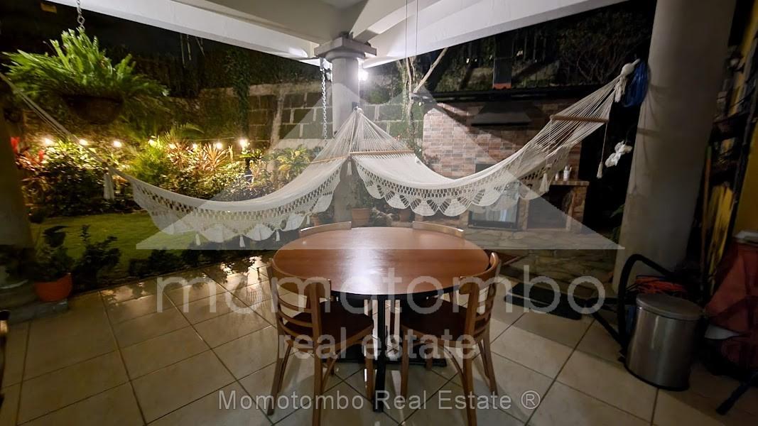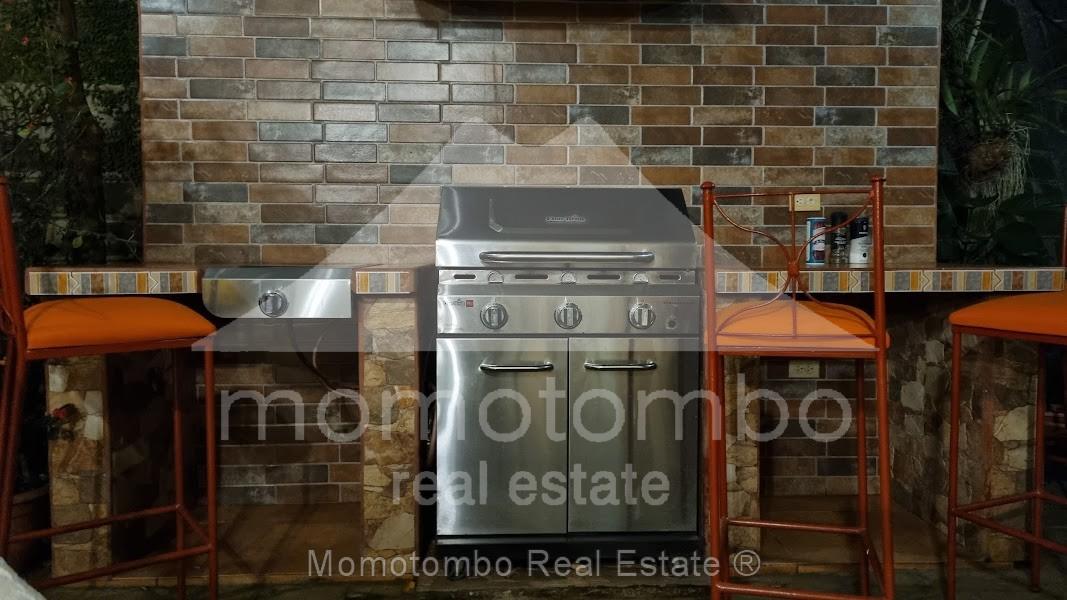 Agradable casa de 315 m2 con techos altos, amplios y armoniosos ambientes, preciosa terraza con área de barbacoa, bonito jardín y muros perimetrales con cerca eléctrica en una calle privada de Las Colinas muy cerca de Galerías Santo Domingo. Cuenta con 4 habitaciones con a/c, 3 baños, cuarto y baño de servicio, una sala muy amplia y luminosa integrada a una hermosa terraza de 60 m2, área de comedor también integrada a la terraza, espaciosa cocina, área de lavado y planchado y estacionamiento interno para 4 vehiculos, Goza de techo y cielo raso nuevos con aislante térmico, 6 unidades de aire acondicionado (en habitaciones, sala y comedor), abanicos de techo en todos los ambientes, sistema de agua caliente, cisterna con bomba hidroneumática, alarma, sensores, botón de pánico y sistema de cámaras de seguridad.