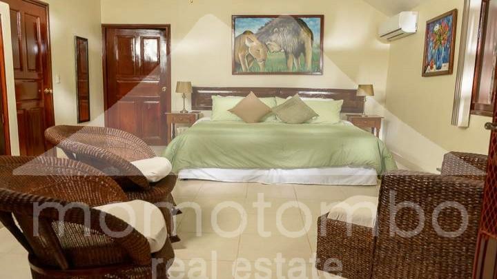Vive en armonía con la naturaleza, en una preciosa Villa de 3 habitaciones en medio de un Resort que cuenta con 2 Piscinas, 3 restaurantes, Área de Yoga Shala con vista a la Laguna, Centros de Conferencia, Servicios de Front Desk, Transporte Interno desde y hacia cualquier punto dentro del Resort, amplio parqueo, vigilancia, wifi y TV por cable. El Resort esta frente a la Bella Laguna de Apoyo entre las ciudades de Masaya y Granada.La Villa cuenta con techo de teja, 1 habitación en la planta superior con balcón y en la planta inferior se encuentran las otras 2 habitaciones, la sala,comedor,cocina, desayunador, bodega, área para lavadora, un amplio porche y jardín. Cada habitación cuenta con aire acondicionado split, ventilador de techo, baño privado con agua caliente ( titan) , closet y sus cortinas verticales. Se vende completamente amoblada, con aires acondicionados, los ventiladores de techo, las cortinas verticales, 2 camas king y 2 camas unipersonales, refrigeradora, cocina, microondas, horno. Juegos de sala, comedor. La cuota de condominio es de $390/mes los cuales incluyen: TV por cable, agua, mantenimiento de áreas, jardinería, housekeeping, vigilancia 24 hrs, wifi, transporte interno, mantenimiento de las 2 piscinas y limpieza.
