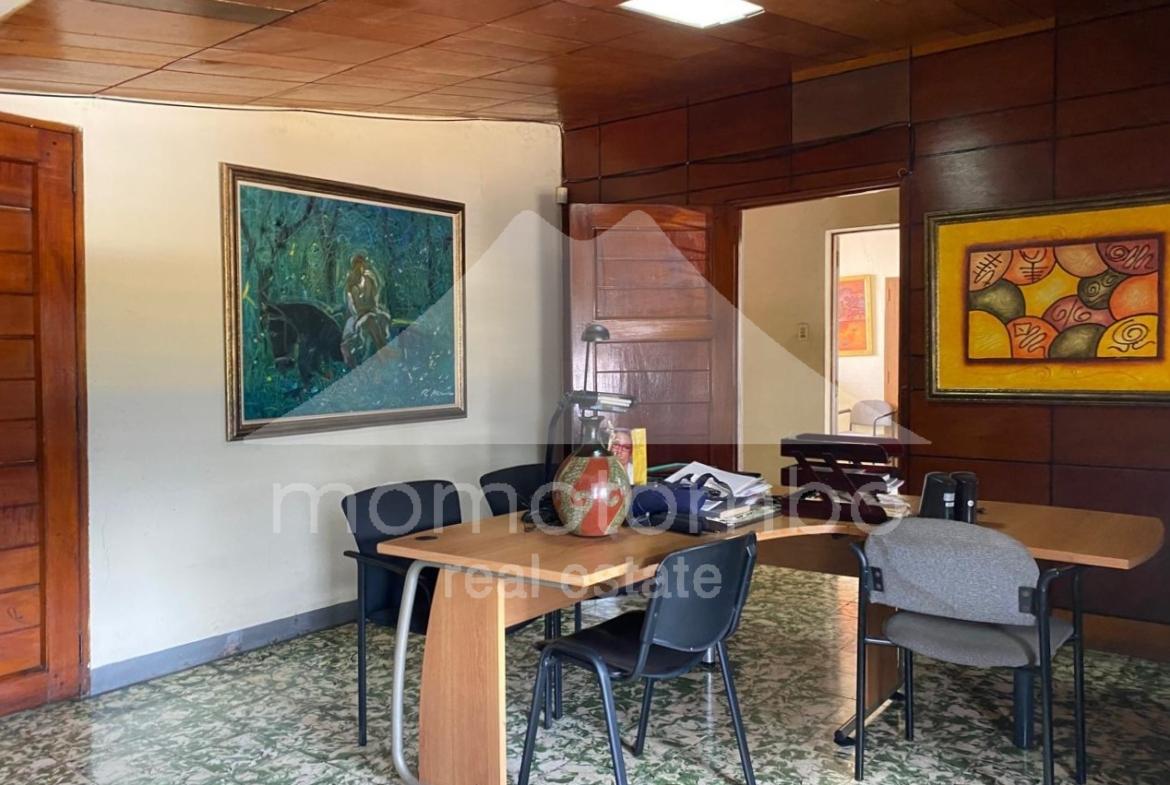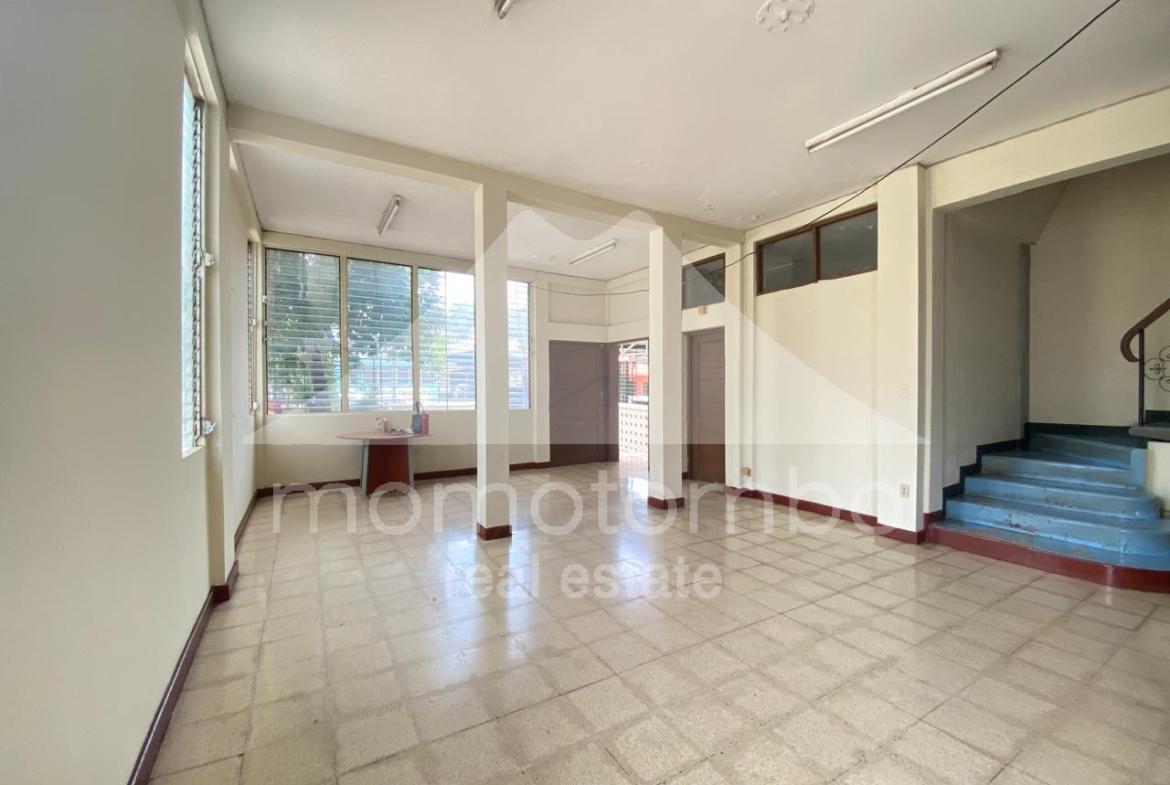 Propiedad esquinera de 290m2 con excelente ubicación comercial, construcción sólida y magnífica distribución interna apta para oficinas, tienda o negocio. Cuenta con 289.6 metros cuadrados de construcción distribuidos en dos plantas con varios ambientes entre los que destacan: amplia sala de exhibición, porche, jardín, 5 habitaciones, 3 baños, área de comedor, vestíbulo, bodega y área de lavandería.