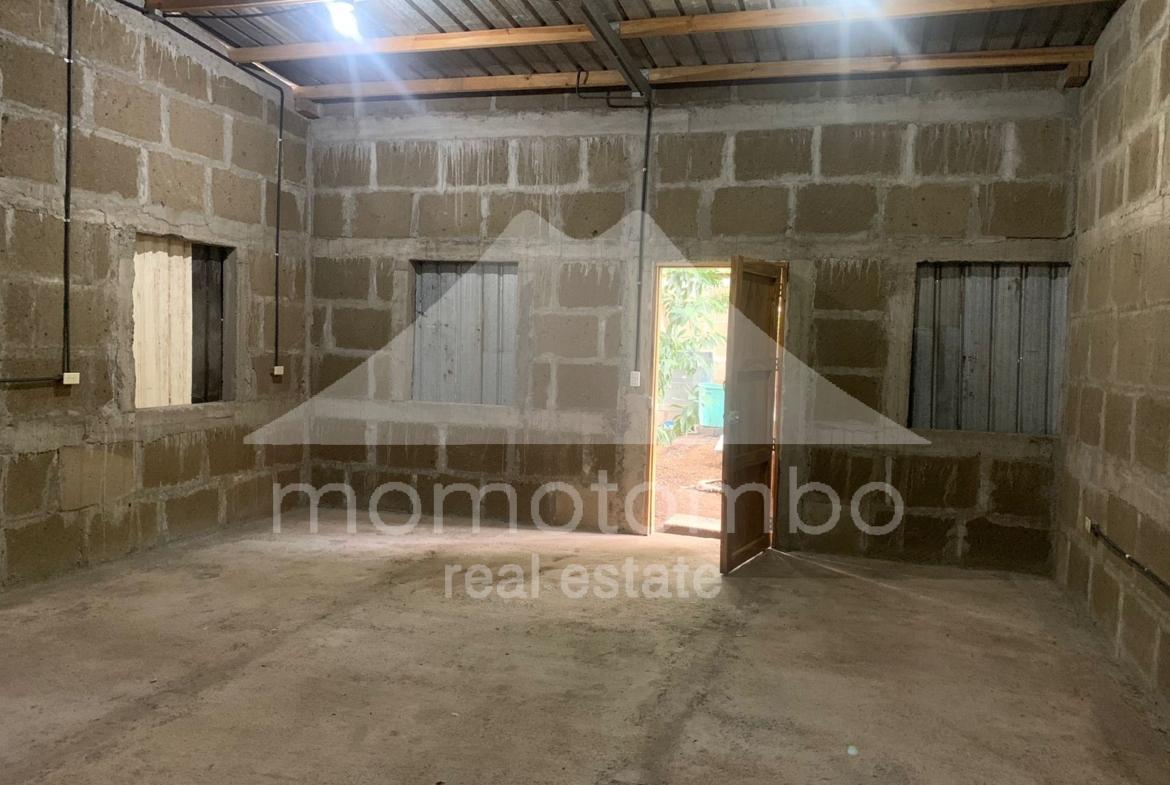 LOTE #1. Casa de 54 m2 en obra gris con un cuarto adicional de 12.25 m2 en un lote de terreno de 9.6 varas de frente por 49.71 varas de fondo, con un total de 346.08 v2 a unos minutos del centro de San Rafael del Sur, a unos 15-20 minutos en auto de las playas de Masachapa, Pochomil y Montelimar y a unos 40-45 minutos de Managua. Cuenta con 2 construcciones independientes de piedra cantera, ambas en obra gris, sin divisiones internas, con piso embaldosado, sistema eléctrico entubado y puertas y ventanas al frente. El área construida al frente del terreno es de 54 m2 y el área construida al fondo del terreno es de 12.25 mt2. El terreno está cercado con alambre de púa el frente, costado y fondo. Cuenta con 2 pozos sépticos y árboles frutales en los alrededores. Goza de acceso a los servicios básicos de luz eléctrica de 110w y 220 w y agua potable.
