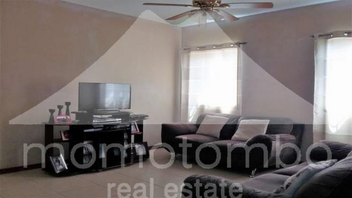 amplia casa de 120 mt2 de construcción en un lote de 352 vr2 de terreno, la construcción de esta propiedad es de un 80% de concreto y 20% reparticiones de gypsum. Cuenta con 3 habitaciones ( habitación principal + baño independiente con aire acondicionado split y segunda habitación con aire acondicionado split), sala- comedor, sala familiar, cocina con top de granito, terraza, porche y estacionamiento para 2 vehículos.