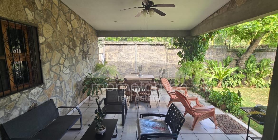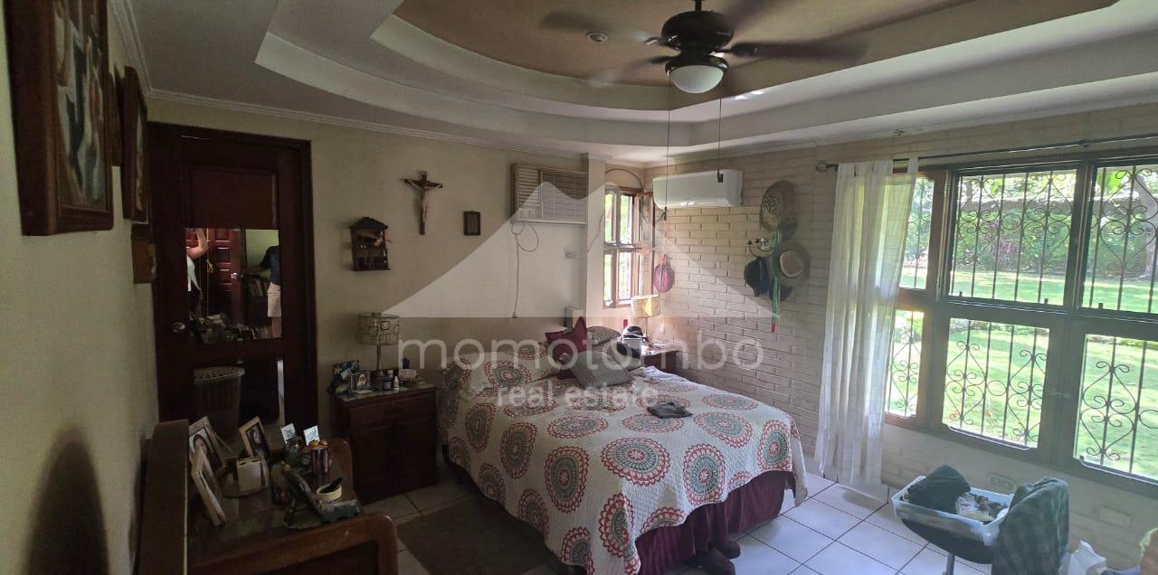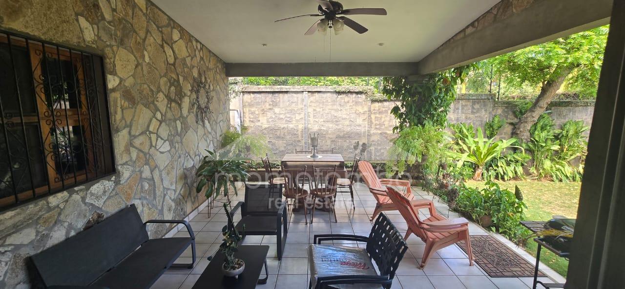 Amplia y hermosa propiedad de 270 mt2 de construcción en un lote de 1,613 vr2 de terreno, ubicada en carretera a Masaya, ideal para vivir en un ambiente campestre y fresco a tan sólo 3 minutos de Galerías Santo Domingo, y gran valor comercial sobre carretera a Masaya en los alrededores de los semáforos del Hospital Metropolitano. Posee muros perimetrales con cerca eléctrica, agradable patio engramado con plantas ornamentales, pinos y variedad de árboles frutales. Dispone de 3 habitaciones con aire acondicionado Inverter + estudio, 3.5 baños con calentador de agua eléctrico y muebles de madera, cuarto y baño de servicio, sala, comedor, cocina con gabinetes de madera y desayunador, terraza, bodega, área de lavandería, y garaje techado para 2 vehículos. Cuenta con tanque de reserva de agua con bomba y madera de cedro en ventanas y puertas, cuenta con sistema de riego automatizado para los jardines y portón interno eléctrico