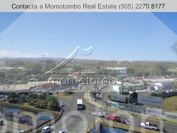 espacio de 120 mt2 para oficinas en edificio recién construido estratégicamente situado en un costado de la rotonda centroamérica, en el nuevo centro managua, con ubicación premium, vistas panorámicas, tres diferentes accesos y salida inmediata a carretera a masaya, sobre la intersección más transitada del país. este espacio se ofrece en el 6to piso de un edificio de uso comercial y corporativo de 8 plantas con estructura principal de concreto reforzado que garantiza protección antisísmica y antincendios, cerramientos con ventanales de vidrio insulado y particiones internas en mampostería, livianas. el edificio cuenta con iluminación led de alta eficiencia, sistema solar en áreas públicas, sistemas de aire acondicionado de alta eficiencia, sistema eléctrico respaldado 100% con planta eléctrica, sistema de agua filtrada en todo el edificio, elevadores con acceso desde el sótano, sistema de cámaras de seguridad en todas las áreas de acceso, comedor y área de descanso para los trabajadores, escaleras de emergencia y escaleras de uso público. cuenta con seguridad 24 horas en todas las áreas de acceso y con fácil acceso a transporte urbano e interurbano. el piso en que se encuentra este espacio para oficinas goza de las vistas más espectaculares hacia el lago de managua y alrededores. el espacio en renta se entrega en obras gris, sin embargo, el propietario puede recomendar a un arquitecto que cobraría un precio preferencial. el canon de arriendo mensual es de us$ 16.50/mt2 y la cuota de mantenimiento de Áreas comunes es de u$$ 3.50/mt2