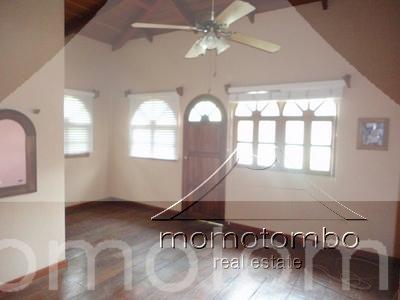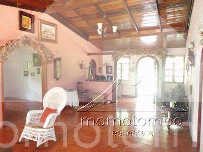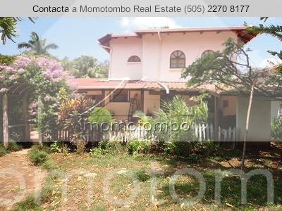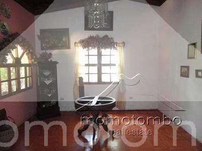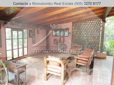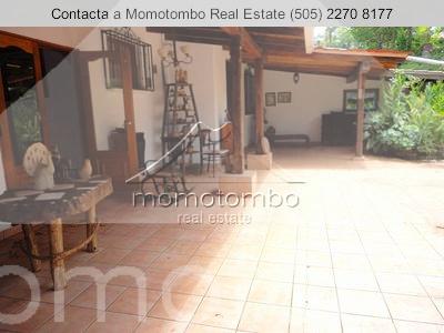 hermosa casa estilo quinta en zona muy tranquila. sobre callejon privado. posee 412mt2 de construcción y 6,934.71vr2, todo con muro perimetral y porton de acceso para vehículos; eléctrico. todo el patio delantero es enchapado en piedra de cantera. con jardines y abundante vegetación en el patio trasero. estacionamiento. la casa cuenta con 6 habitaciones, 5 baños, cuarto con baño para el servicio, sala, comedor, cocina, terraza amplia, sala familiar y una bodega. con techo machimbrado y ventanales de madera sólida. el master-room es el que se encuentra en la segunda planta y tiene todo su piso machimbrado en madera.