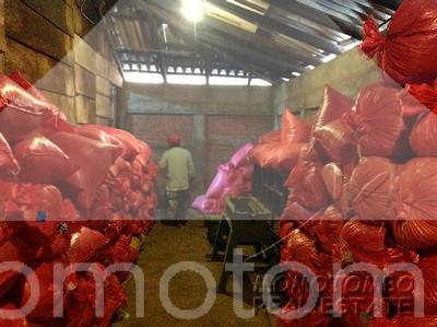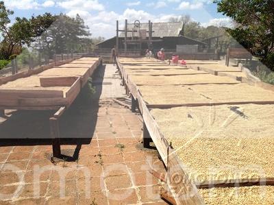 hay unos 600 metros cuadrados de patios para secar café con zarandas de madera y tela zaram. una pila de piedra cantera de unos 140,000 galones que se llena con agua del techo que sirve para riego de las plantas de almácigos.