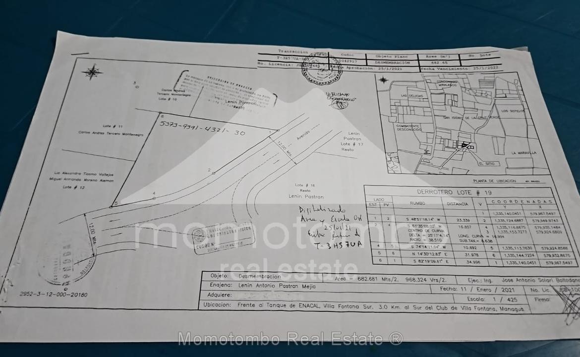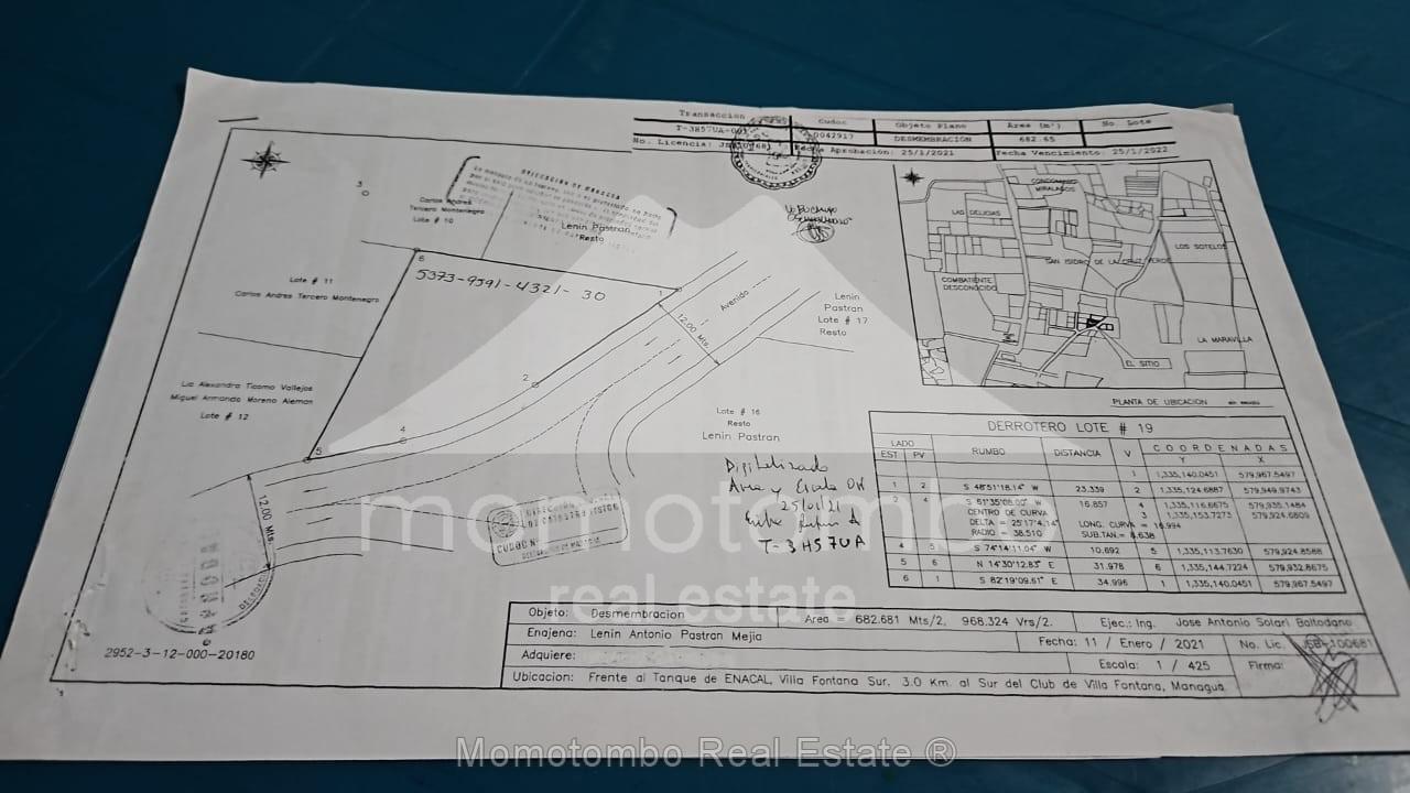 Terreno terrasiado en venta en Villa Fontana Sur. Lote de 597 vr2 con calle adoquinada, y tuberías de aguas pluviales, servicios de agua y luz a lo interno de la lotificación. Precio: US$70/vr2 al contado y US$80/vr2 al crédito (financiado por el propietario), 50% de prima a 5 años de plazo.